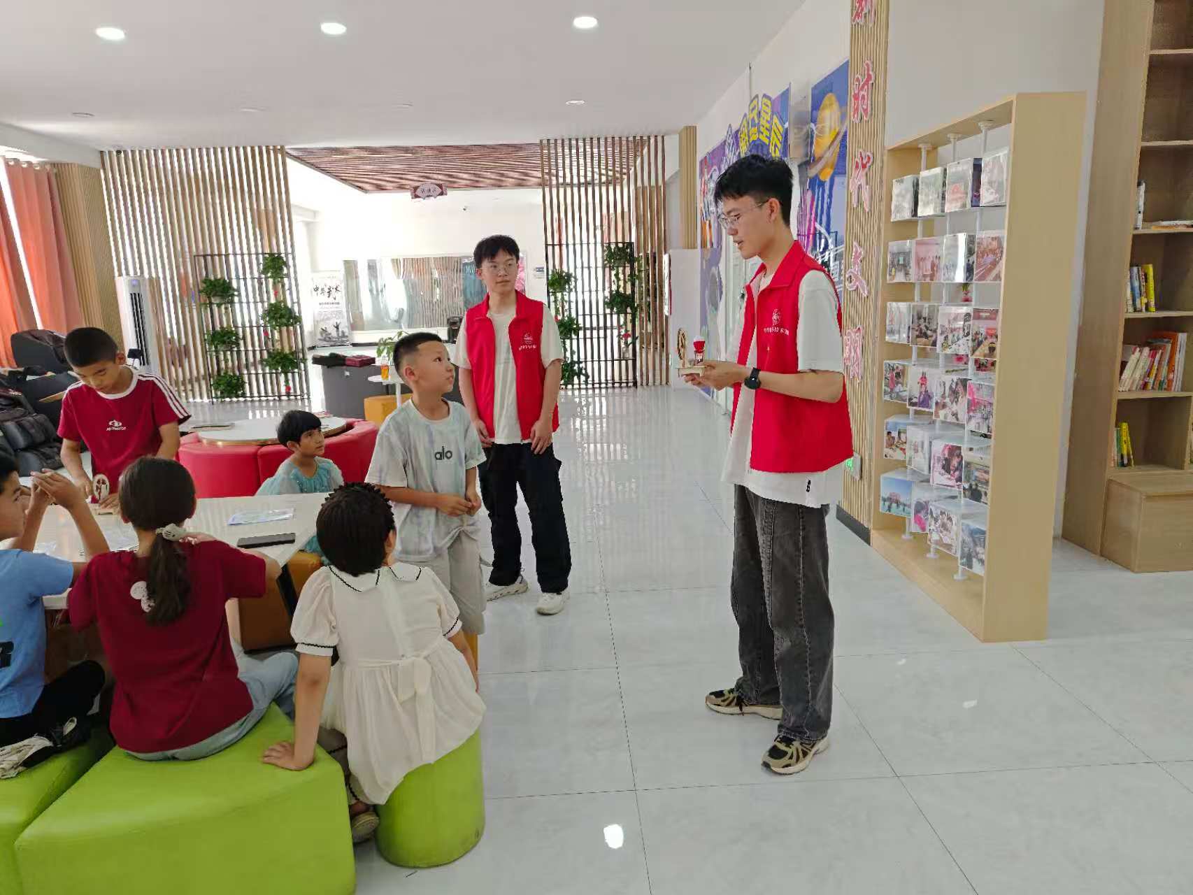 最令孩子们兴奋不已的是实践制作环节。志愿者为每人发放迷你直流电机、扇叶、电池盒、导线等材料包,并分步演示组装步骤:“先把导线连接电池盒正负极,再轻轻装上扇叶,最后接通电源……” 孩子们立刻化身“小小工程师”,专注地投入到制作中。他们有的皱眉思考,小心翼翼地接线;有的相互协作,共同探讨调试方法;遇到困难时,也会主动举手向志愿者求助。当第一台自制电风扇“嗡”地吹出凉风,现场瞬间响起欢呼,孩子们迫不及待地将风扇对准脸庞感受凉意,脸上洋溢着自豪的笑容,成就感满满。