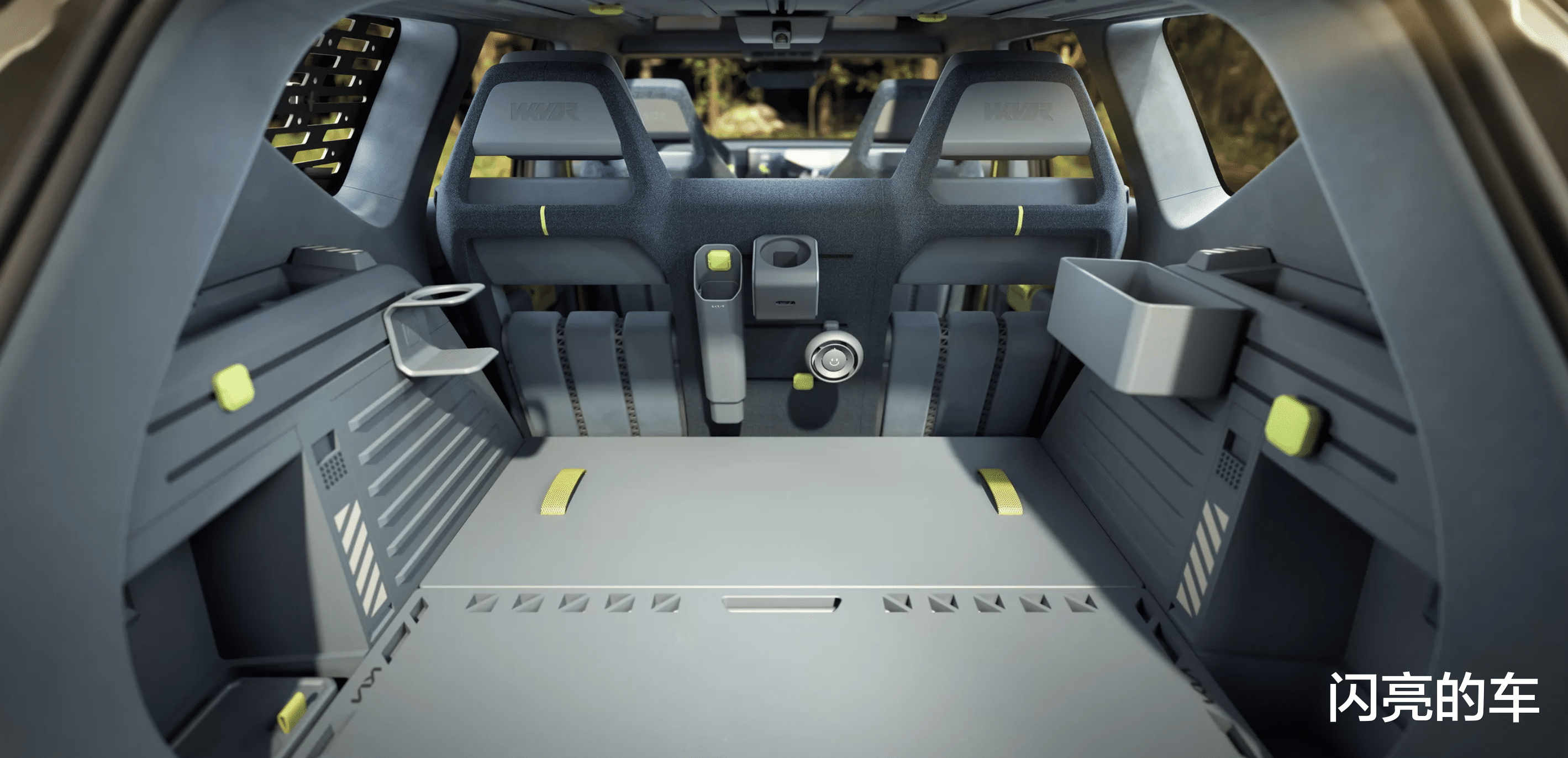 EV5 Weekender概念车还配备了一套全新的车身套件,包括更宽的轮拱、全新的底盘护板、更加厚实的侧裙、发动机舱盖嵌件、大型车型行李架等。除此之外,还在驾驶室一侧的后侧窗外部新增了一个专用支架,类似家用的洞洞板,可以安装额外的设备,这个设计与路虎卫士简直心有灵犀。