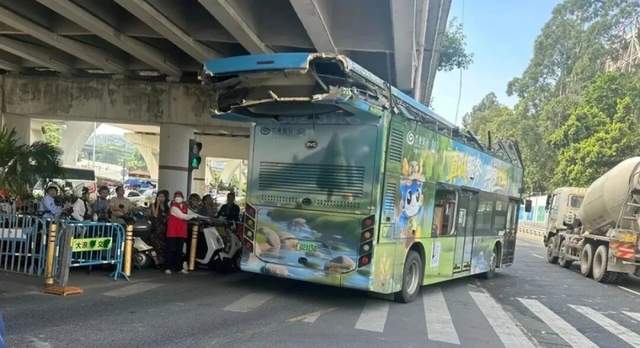 一辆满载乘客的双层巴士,在深圳布龙路桥底发出刺耳的金属撕裂声,车顶如纸盒般被掀开,玻璃碎片四处飞溅。