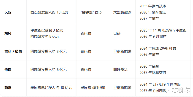现在如果不着急用车,也不想被车企背刺,最好的方法,可能就是当个等等党,因为车企之间也在抢时间,没错,现在的车企都知道,谁先弄出来固态电池,谁就是市场最靓的仔,各大车企都把精力往里砸,我整理了一张表格,你就能看出来的,车企之间正在刀光剑影,各大车企都在往里砸资源,你现在当等等党,到时候,就能占到大便宜了。