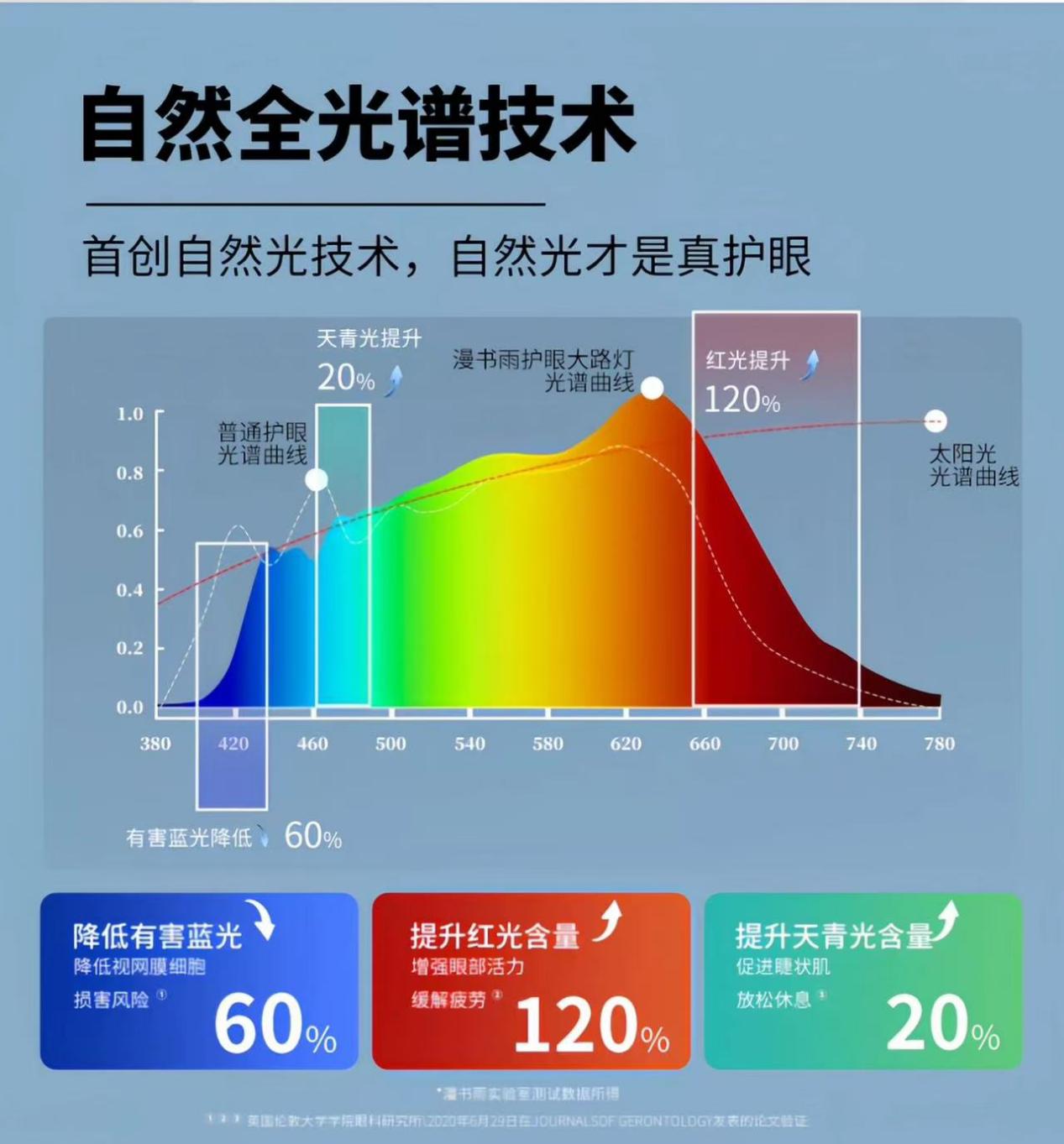 再说说光线质量,它用的是自家研发的Sunturalux类太阳光2.0发光芯片,能模拟天际光色,光谱接近自然光,显色性能特别棒,一般显色指数Ra>97,饱和红色R9>93,都远远优于国家标准,孩子在这样的光线下学习,眼睛舒服,也能更清楚地看到物体的本来颜色。