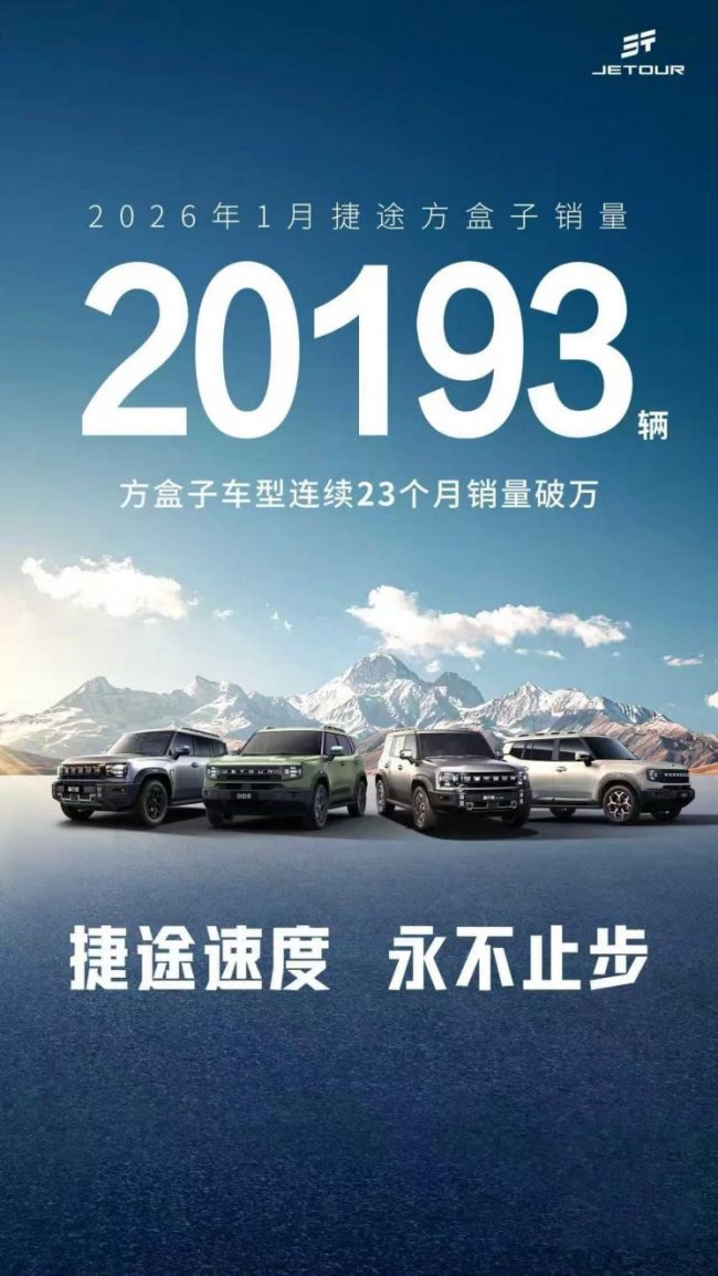 2026年伊始,全球汽车市场格局持续重塑,中国汽车出海迎来提质增效的关键时期,捷途汽车作为中国汽车出海的标杆品牌,凭一份厚重的开年成绩单,再度在全球车市绽放中国光彩。凭借多年深耕积累的品牌底蕴与扎实的产品实力,捷途不仅稳固了“中国方盒子全球冠军”的核心地位,更以销量与溢价的双重突破,打破外界对中国汽车的固有偏见,向世界彰显中国汽车的全球价值与发展活力。