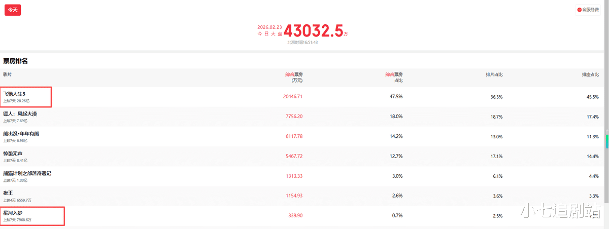 当《飞驰人生3》以28亿的票房领跑2026年春节档时,王鹤棣、宋茜主演的《星河入梦》却只有7968万的票房。