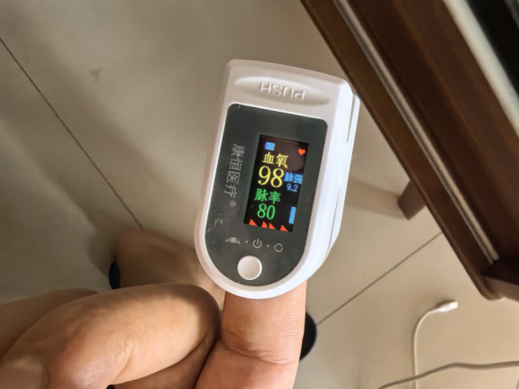 这款血氧仪准确度还行,加班久坐时测过几次,数值95左右,和同事相互测的也差不多;挺尴尬的是低头玩手机久了手麻,测出来92,抬手晃几下再测就94;查资料说它的传感器识别末梢神经状态算法简单,手麻时血流不畅易误读,得调整姿势再测才稳,说实话这点得注意。