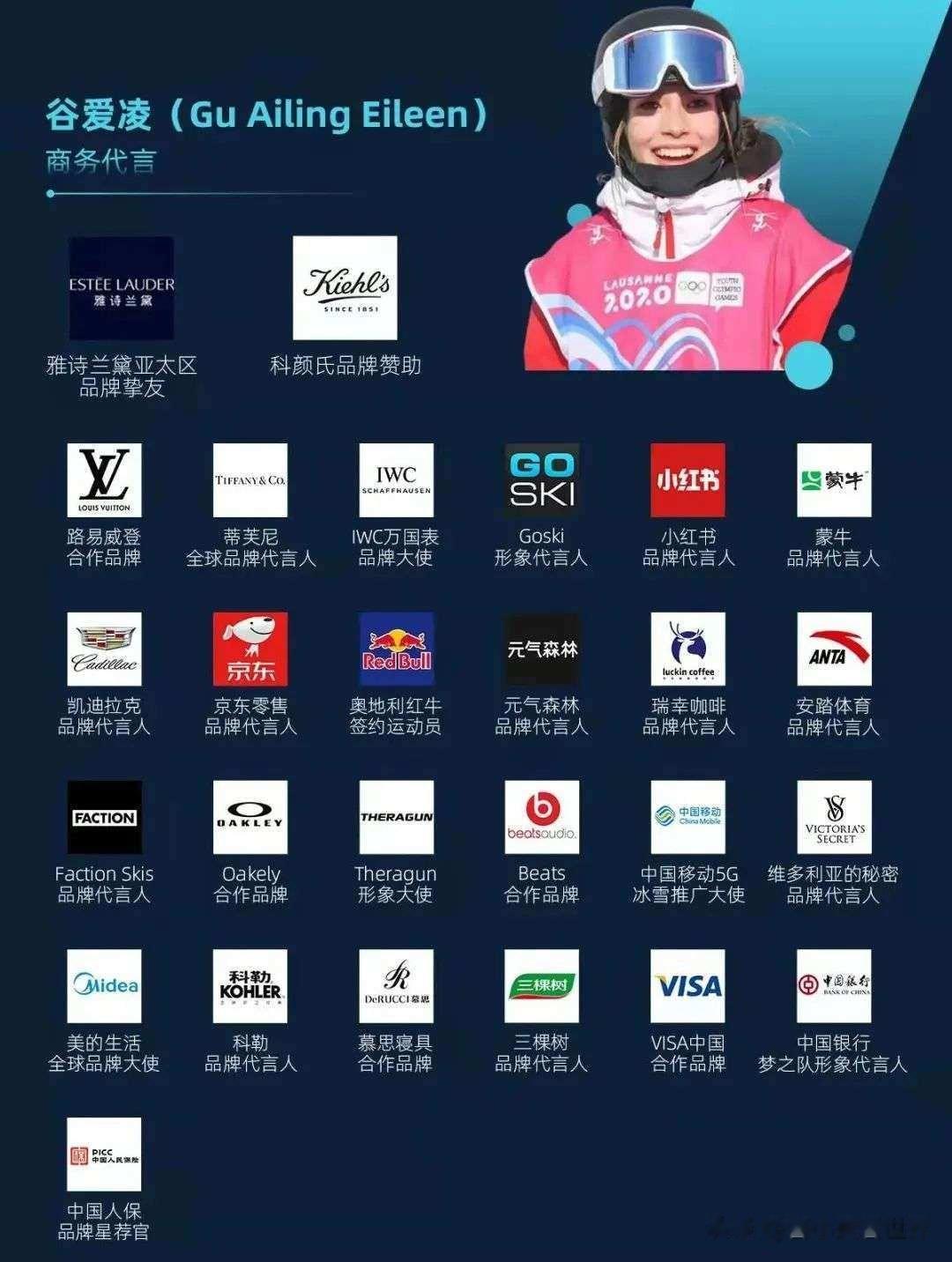 一边是美国市场认可的精英教育背景,一边是中国市场需要的文化认同感,再加上赛场上的表现,让谷爱凌的商业价值非常高昂。