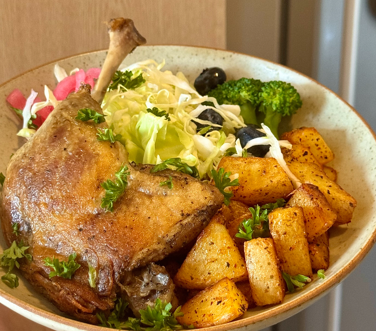 下次朋友来家聚餐,不妨端出这道"假装很高级"的油封鸭腿。当他们惊叹于你深藏不露的厨艺时,你可以眨眨眼说:"不过是和时间做了个交易而已~"