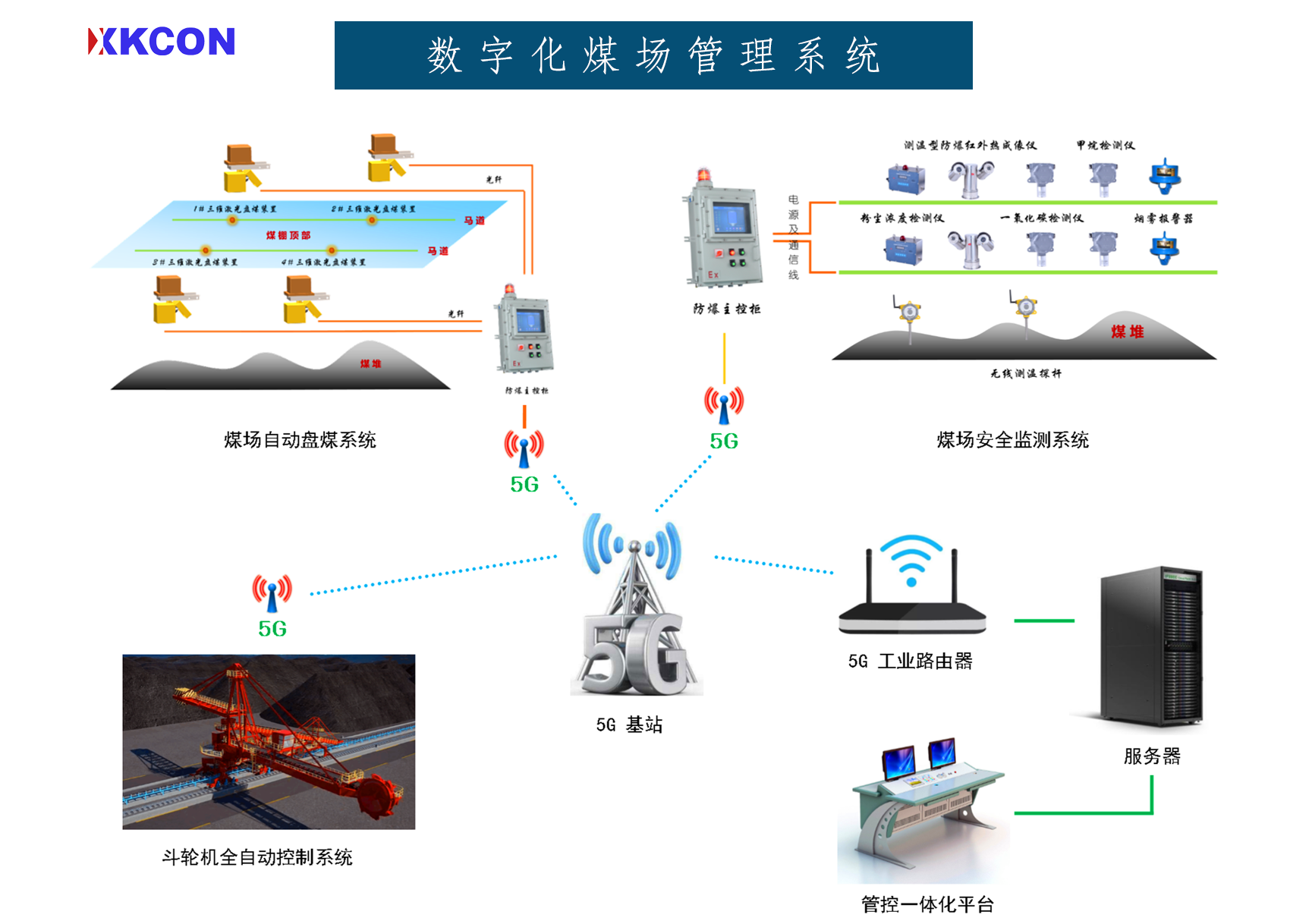 XKCON祥控封闭式圆形煤场环境安全动态监控系统由煤场红外热成像动态监控、储煤堆内部温度监测,挡煤墙测温系统,可燃气体、粉尘浓度与烟雾安全监测系统,输煤皮带明火监测系统和数字化煤场安全监测平台组成等多个部分组成,能够全面、动态、实时、精准的管理封闭式圆形煤场,预防煤堆自燃。