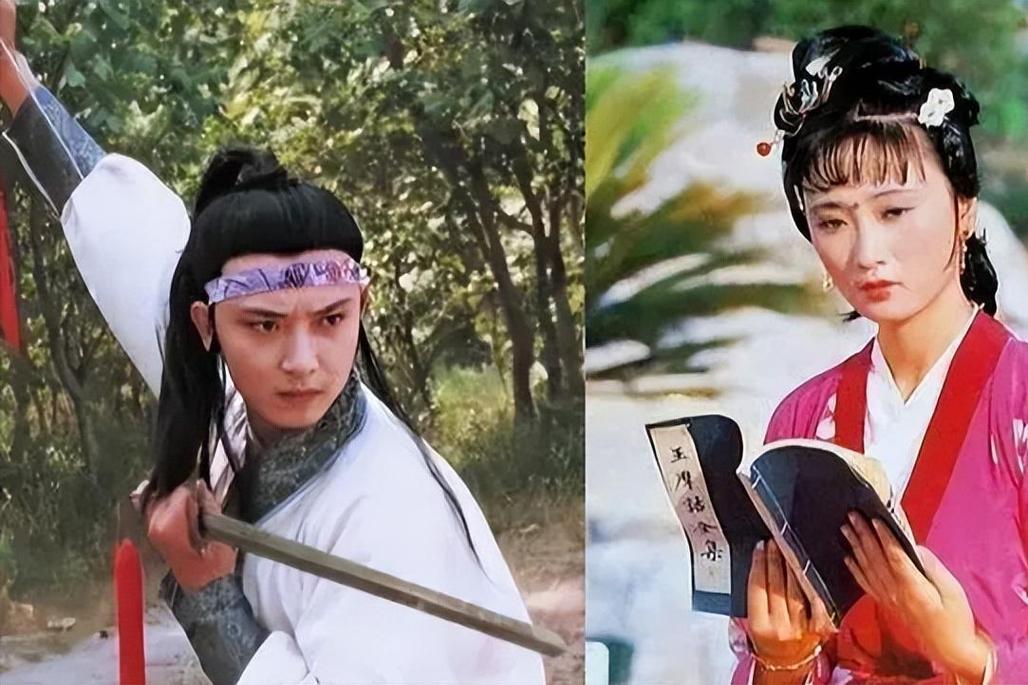 第一对,也是最“大胆”的一对——侯长荣和陈剑月! 侯长荣在剧组一人分饰两角,既是风度翩翩的柳湘莲,也是温润如玉的北静王,颜值拉满,当年进组就引得不少女演员侧目;陈剑月则饰演温柔怯懦的香菱,眉眼间满是灵气。 两人在剧组相处久了,互生情愫,偷偷谈起了地下恋,胆子大到离谱——剧组三年,他们直接完成了“人生三步跳”:恋爱、结婚、生子,全程瞒着剧组所有人。
