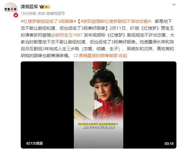 而且规矩是死的,人是活的!就算剧组管得再严,也没挡住爱情的魔力,反而偷偷促成了3段圆满姻缘,每一对都甜到骨子里,而且至今恩爱如初,欧阳奋强也在视频里一一爆料,每一个细节都实锤可查。 咱今天就逐一唠唠,这3对“红楼眷侣”的幕后小故事,看完你绝对会感慨:缘分来了,连剧组禁令都挡不住!