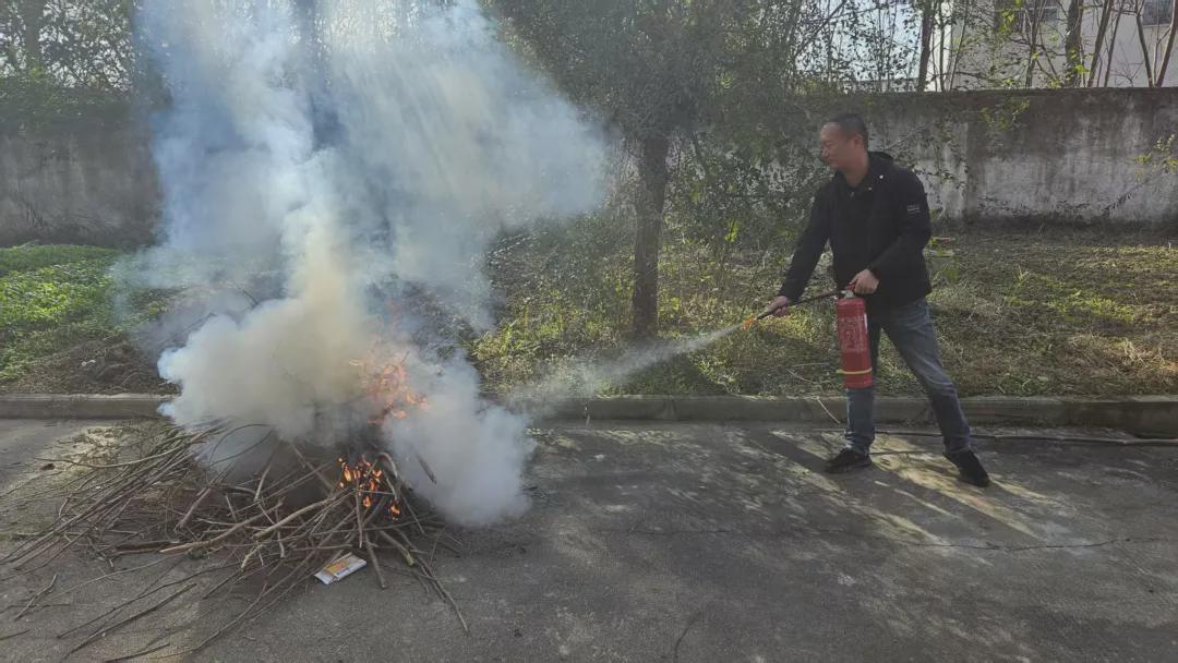 灭火实战演练环节。全体参训人员在安全责任人的指导下,轮流上场操作,亲身体验了使用灭火器扑灭“火情”的全过程。在预先设定的安全区域内,面对“熊熊燃烧”的火焰,大家沉着冷静,严格按照操作步骤,成功将火源扑灭。整个演练过程紧张有序、配合默契,达到了预期的效果。