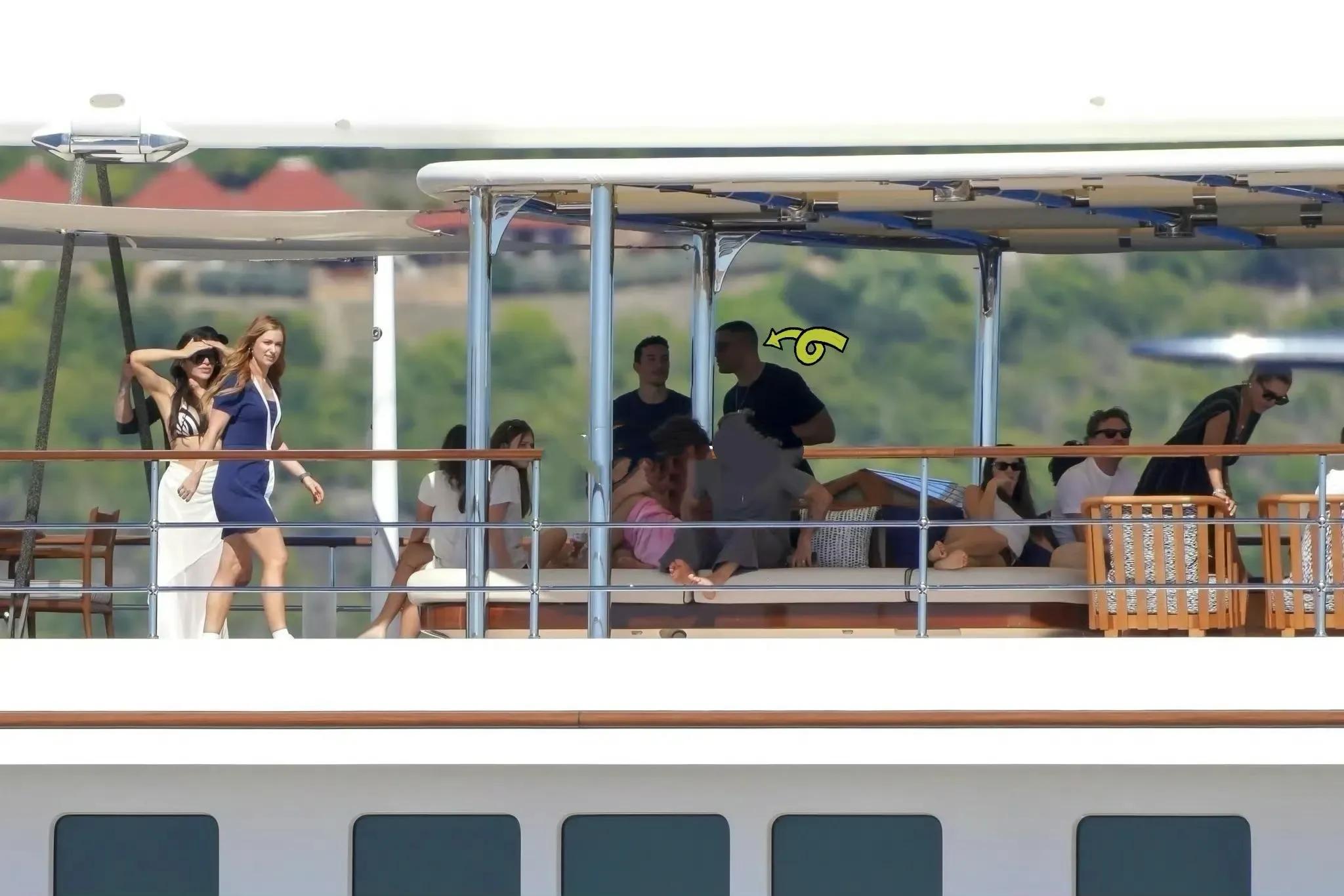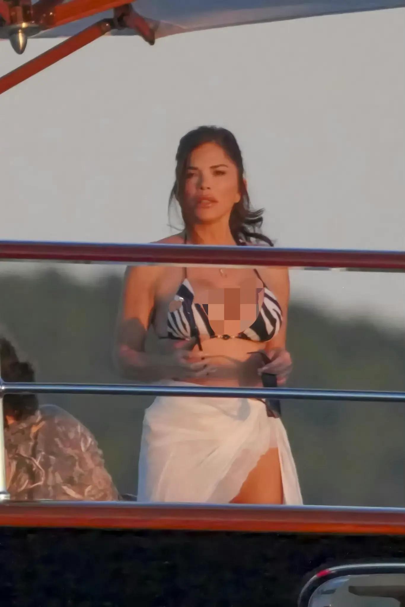 桑切斯无惧地中海炙热的大太阳,她和贝佐斯在和宾客享受着阳光和美酒。