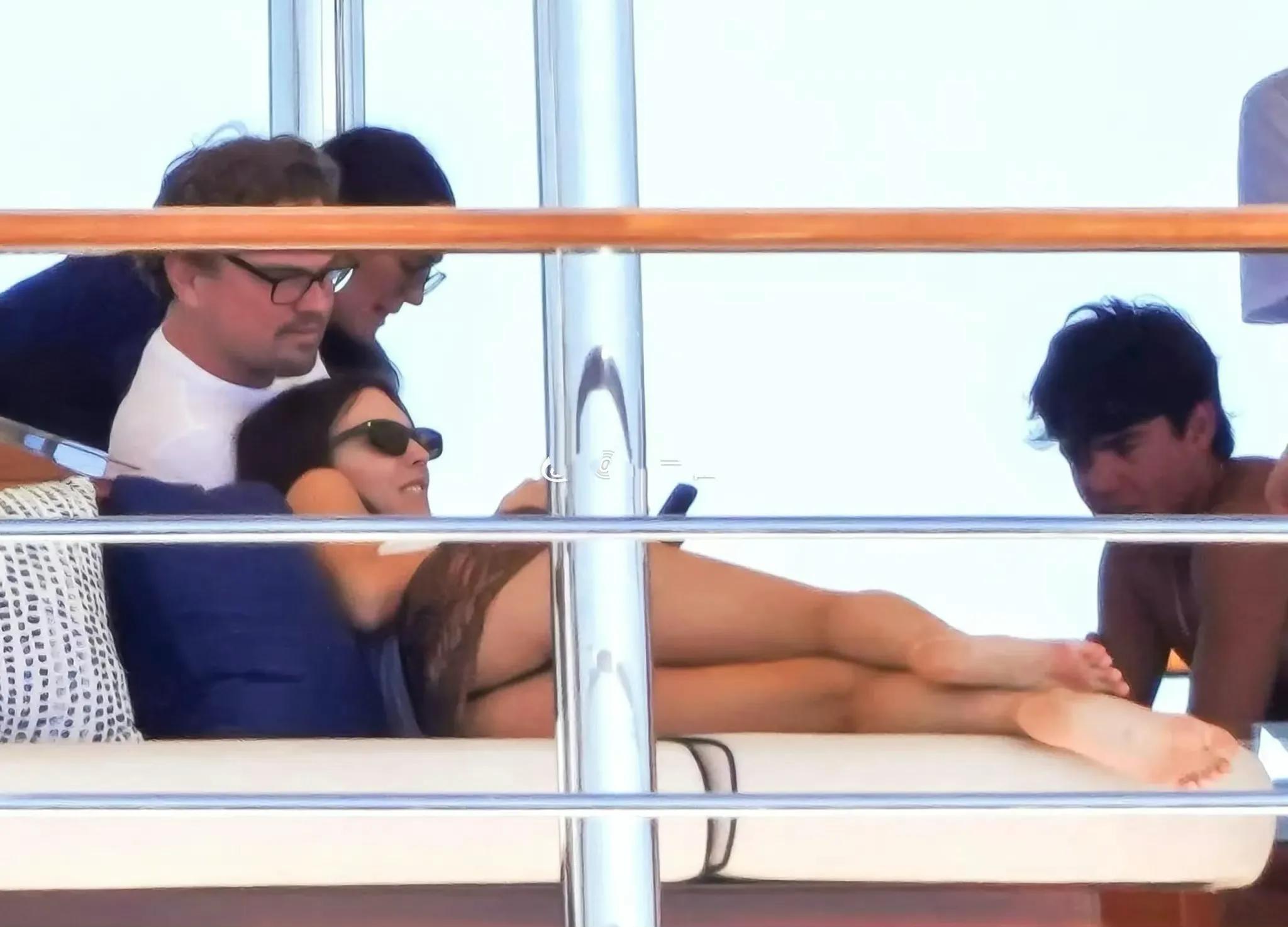 而巨星小李子则和他的超模女友VC躺在太阳椅这里休憩。