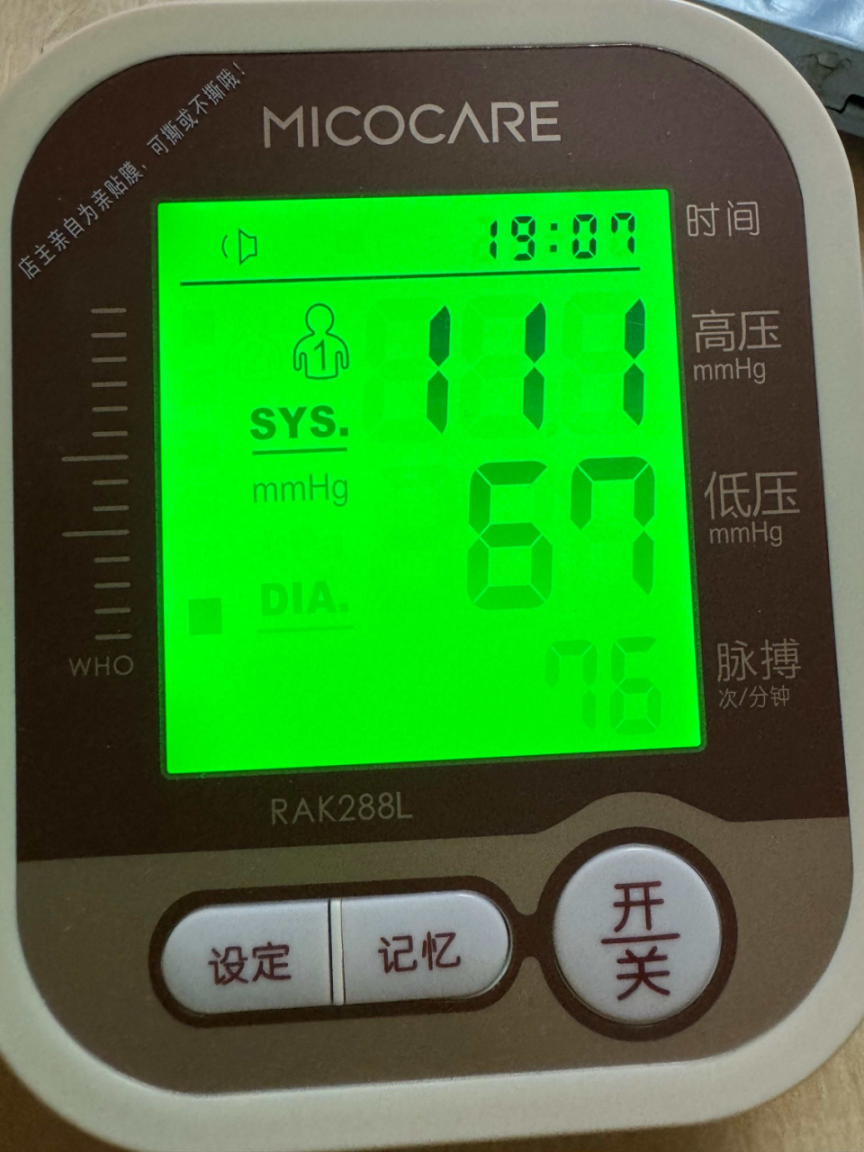 这款血压计准确度中规中矩,整体趋势倒能看明白,比如早上起来测和睡前测,收缩压差个10左右,不算离谱;说实话最闹心的是刚运动完测,跟平静休息半小时测差了12,当时还以为机器出问题了;后来了解到它没压力波动自适应功能,心率快的时候抓不准收缩压峰值,得等心率稳了才靠谱。