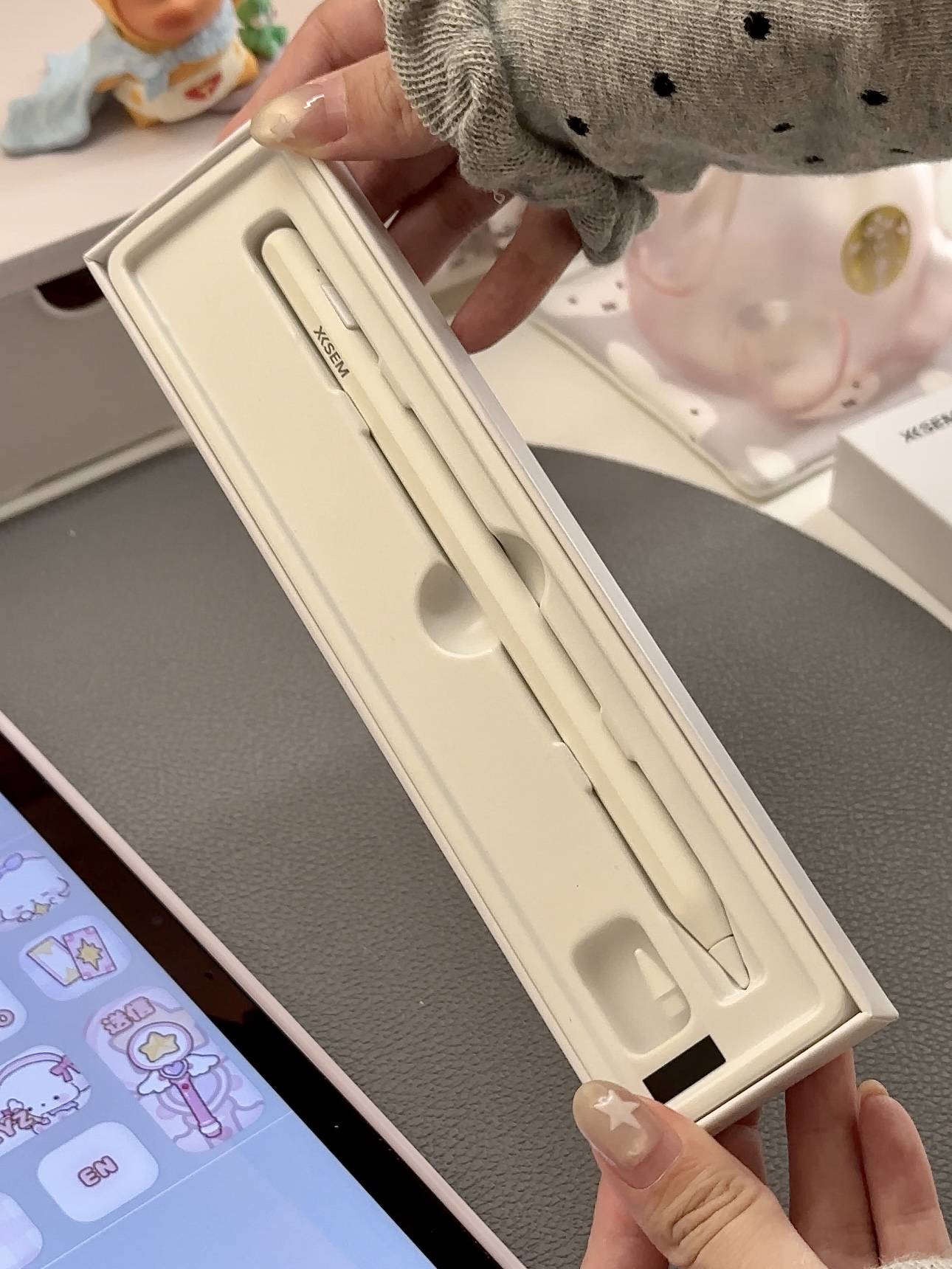 西圣pencil X电容笔的配置在同价位的电容笔算是非常顶级的了,还原Apple pencil书写体验度高达98%以上,搭载了全新AI触控芯片,结合多维触控算法,响应速度超级快,笔尖采用与原装笔同款的POM 材质,耐磨且带有恰到好处的阻尼感。还有1.5mm细笔尖,配合0.1超细压感触点技术,写字清晰不糊,特别适合记笔记写小字、批注 PDF。笔尖与屏幕的反馈很跟手,几乎没有延迟感。而且它还有50段智能信号调校,通过配套App可以自定义调节,能根据不同设备、握笔方式动态优化信号输出,彻底告别传统平替笔的延迟与断触痛点;还支持撤销、截图、返回主页等24种快捷功能,熟练后大幅提升操作效率。