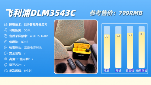 飞利浦DLM3543C以一拖二配置适配双人场景,15g发射器轻如纸片,磨砂背夹力度适中,夹在衬衫领上久戴无坠感。TFT高清屏直观显示电量与降噪状态,Type-C接口支持边充边用,搭配MFi认证线,苹果、安卓设备插机即连,无需拔麦就能外放回放,对新手十分友好。