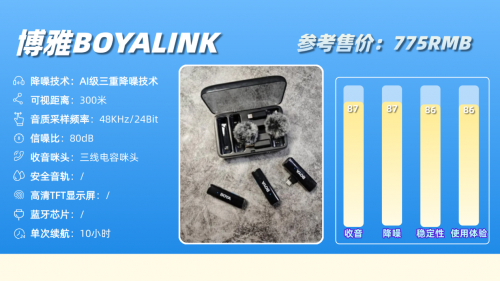 博雅BOYALINK主打多设备兼容与专业收音,14g发射器佩戴轻盈无负担,背夹力度适中,夹在衣领上稳固不晃。