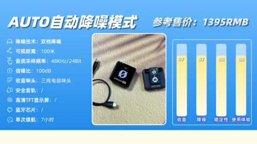 但亮面机身易刮花,需依赖收纳包保护;背夹在大幅动作时稳定性欠佳,有轻微移位风险。户外强风或复杂嘈杂环境下,降噪表现一般,需搭配防风套使用,强降噪模式还会让人声稍显闷沉。远距离传输受遮挡影响明显,实际可靠距离低于标称的300米,整体更适合室内短视频、轻访谈等场景,专业户外创作需提前测试适配性。