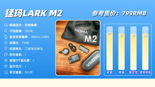 猛玛LARK M2的9g发射器仅硬币大小,无外露Logo的磨砂机身夹在衣领下几乎隐形,磁吸背夹力度适中,日常走动或轻微晃动都不会移位。48kHz/24Bit采样搭配全指向咪头,室内安静环境下人声清晰稳定,一拖二双麦设计让双人访谈切换自然,取出即自动配对,新手无需调试就能快速开拍。