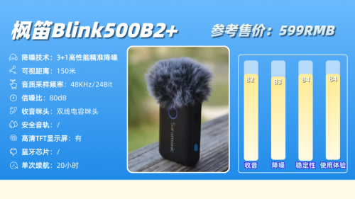 枫笛Blink500B2+以一拖二配置适配双人场景,23g发射器搭配背夹与磁吸双佩戴方式,夹在衣领上稳固性尚可,但背夹夹持力偏紧,长时间佩戴薄衫易留下压痕。接收器带OLED触摸屏,电量、降噪档位等信息一目了然,标配苹果MFi认证转接器与TRS线,手机、相机、电脑可即插即用,配件贴心度很高。