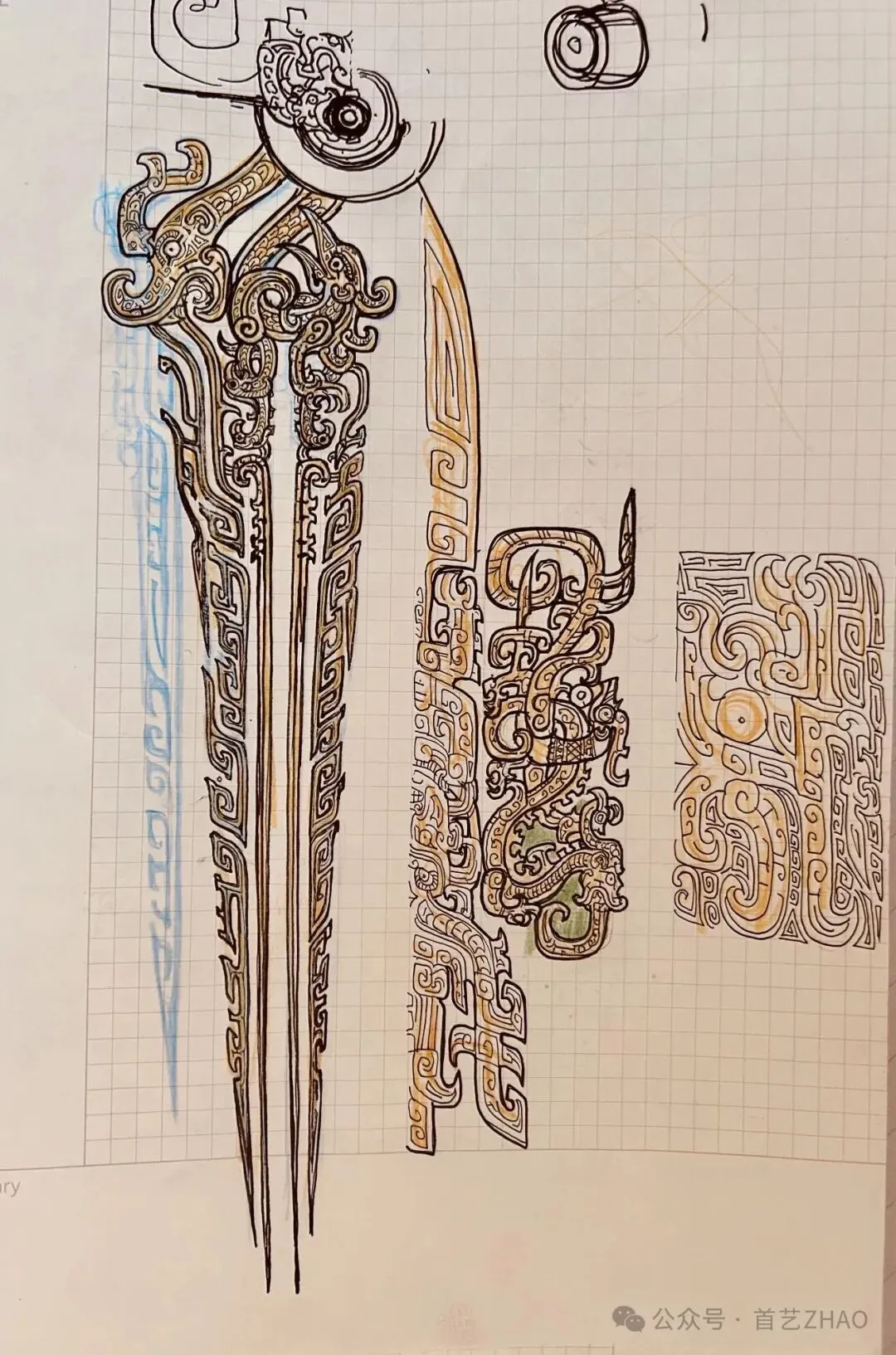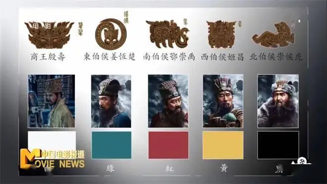 赵首艺透露,这一系统性的构思来自于导演乌尔善,在实际制作过程中,他们也会将色彩和图徽元素渗透到座驾、兵器、旗帜、着装等各种道具细节中,比如姜王后是东伯侯之妹,她的服饰上就有来自东鲁的青绿色元素,比如绿松石、短剑上也带着青绿色。