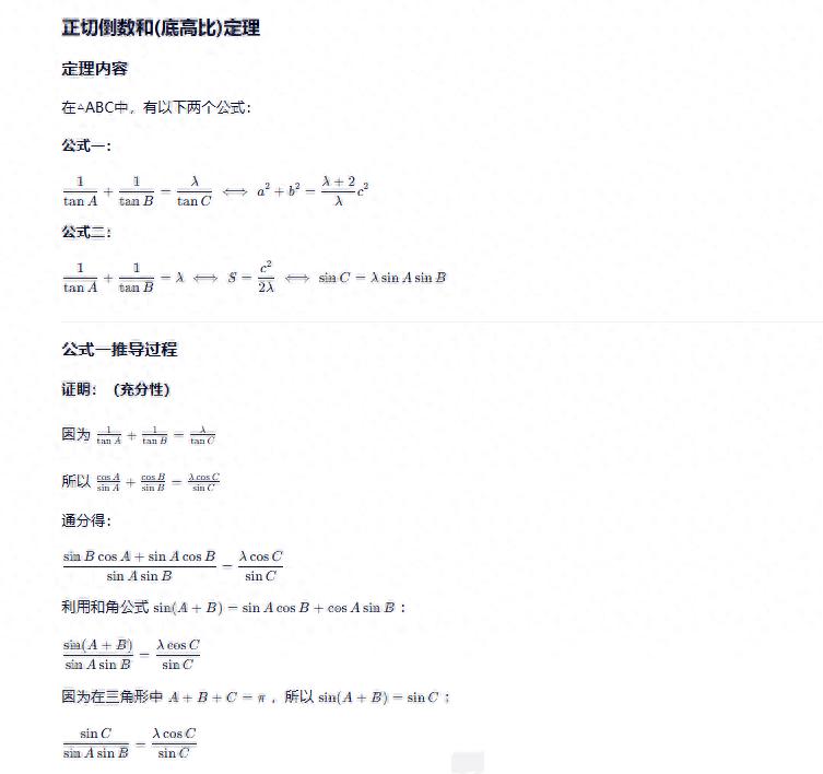 正切倒数和(底高比)定理推导过程声明:内容来源于网络,版权归原作者所有,转发旨在分享,禁止商业用途,若侵权后台留言。