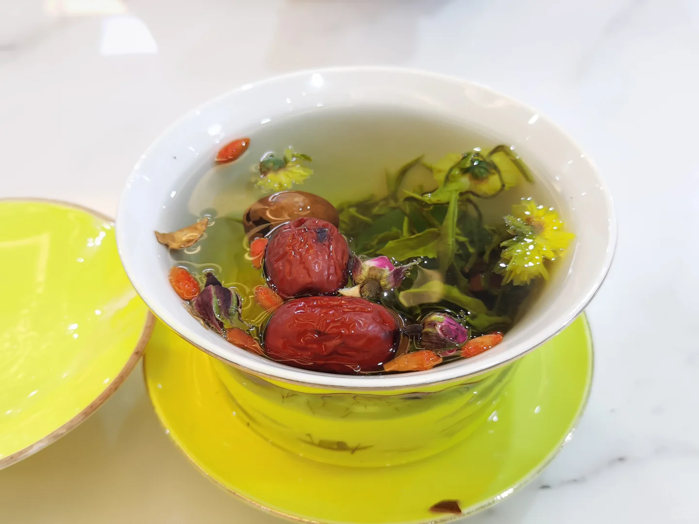 三泡台的茶料配伍堪称 “微型丝绸之路”。云南毛尖的鲜爽代表南方茶区的温润,新疆葡萄干的甜润带着西域风情,甘肃临泽小枣的蜜感是本地物产的骄傲,宁夏枸杞的醇厚则串联起黄河流域的农耕文明 —— 这与兰州作为丝路枢纽的地位密不可分。