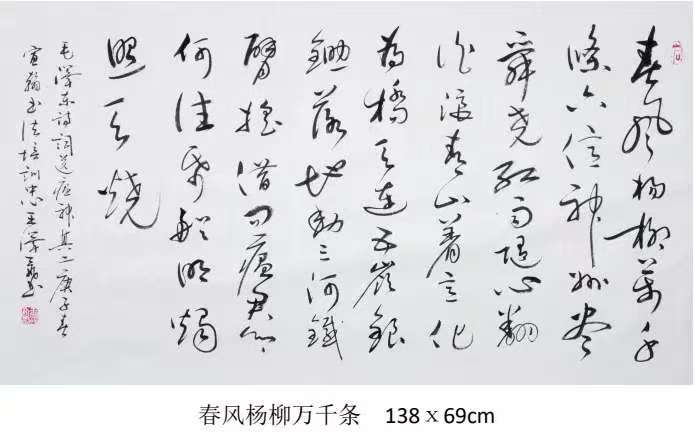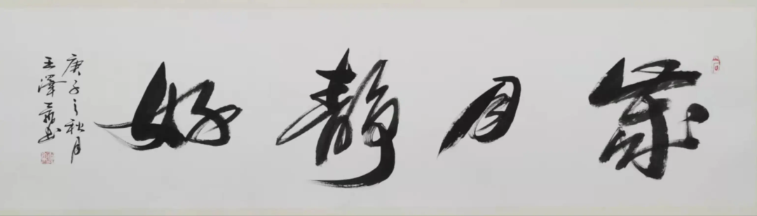 王泽飞的作品用笔极具节奏感,沉实处不激不厉、温文尔雅,激荡处行笔如飞,一气呵成,笔下线条跃宕多姿,又富有弹性,可谓韵致盎然,师古而不泥于古,更具创新精神,在古典与现代的结合处,形成了自己有意味的形式。
