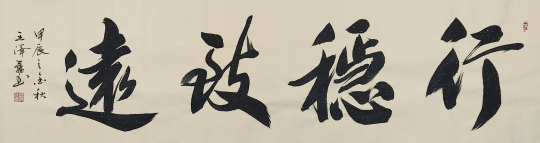 王泽飞,中国一线实力派书法家,国家一级美术师,国礼特供艺术家,著名榜书大家。1963年7月生,浙江义乌人,大专学历。受父辈影响,自幼喜欢写写画画,临摹了历代名家王羲之、柳公权、颜真卿、欧阳询等碑帖。正、行、草、隶、篆各体兼能,尤擅特大抓笔俯地书写1-4米见方的正体、行草书,篆刻、小楷也具相当功底。