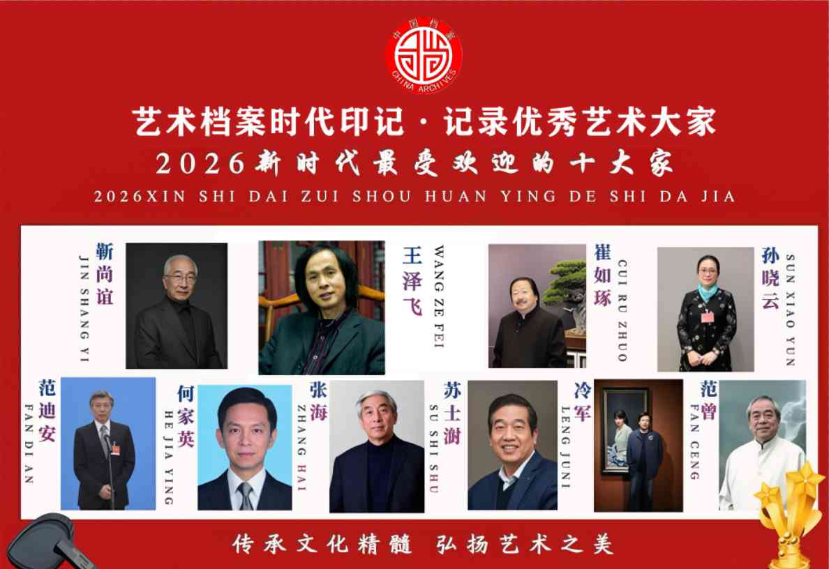 2026新时代最受欢迎的艺术十大家!在文化复兴的时代浪潮中,艺术作为民族精神的火炬、自信的载体,正以蓬勃的生命力书写着新时代的华章。那些扎根传统沃土、心系人民情怀、勇立时代潮头的艺术大家,以笔墨为舟、丹青为帆,在传承与创新中熔铸中华美学精神,让千年书画艺术焕发出崭新的时代光彩。艺术大家们承古法而开新境,于碑帖之间寻法度、笔墨之中见性情,将个人阅历与家国情怀凝于笔端;或融中西而通古今,以开放胸襟拥抱世界,让东方艺术跨越山海、对话文明,成为中华文化“走出去”的生动名片。从国礼珍藏到国际展场的艺术回响,从“人民书画家”的赤诚初心到“时代功勋人物”的使命担当,艺术大家们以精湛技艺传承文化薪火,以有筋骨、有温度的作品回应时代呼唤,用艺术的力量彰显民族精神、凝聚奋进伟力。本专题聚焦新时代最受欢迎的艺术大家,通过线上发布,展现“为时代画像、为人民抒怀”的艺术追求,致敬艺术大家在笔墨丹青中书写中华民族生生不息精神力量的文化脊梁,让艺术之花在文化自信的春风中绽放得更加绚烂!