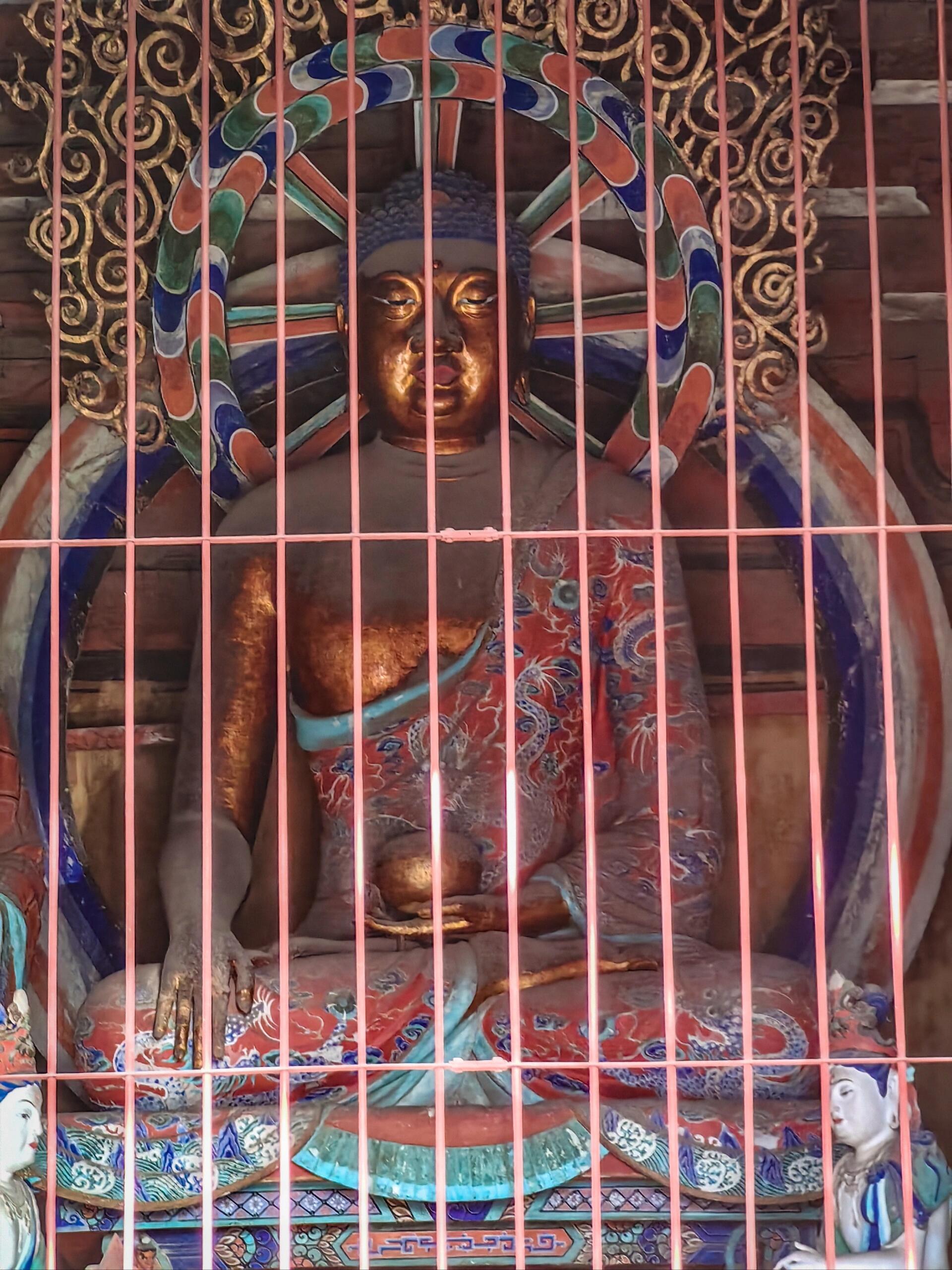 沿着台阶继续向上,便来到了佛光寺的核心——东大殿。推开那扇厚重的木门,一股带着樟木与尘埃的古朴气息扑面而来,殿内光线略显昏暗,却恰好让殿中的唐代雕塑更显庄严。东大殿内共有三十余尊唐代塑像,正中是释迦牟尼佛,两侧是文殊、普贤两位菩萨,再往外是十八罗汉与胁侍菩萨,这些塑像高度从一米到三米不等,姿态各异,却都有着唐代雕塑特有的丰满圆润的面容与从容淡定的神情。释迦牟尼佛的袈裟褶皱自然下垂,像是真的被风吹起一般;文殊菩萨手中的如意纹路清晰,仿佛轻轻一折就能弯曲;就连罗汉脸上的皱纹与胡须,都雕刻得细致入微,仿佛下一秒就要开口说话。