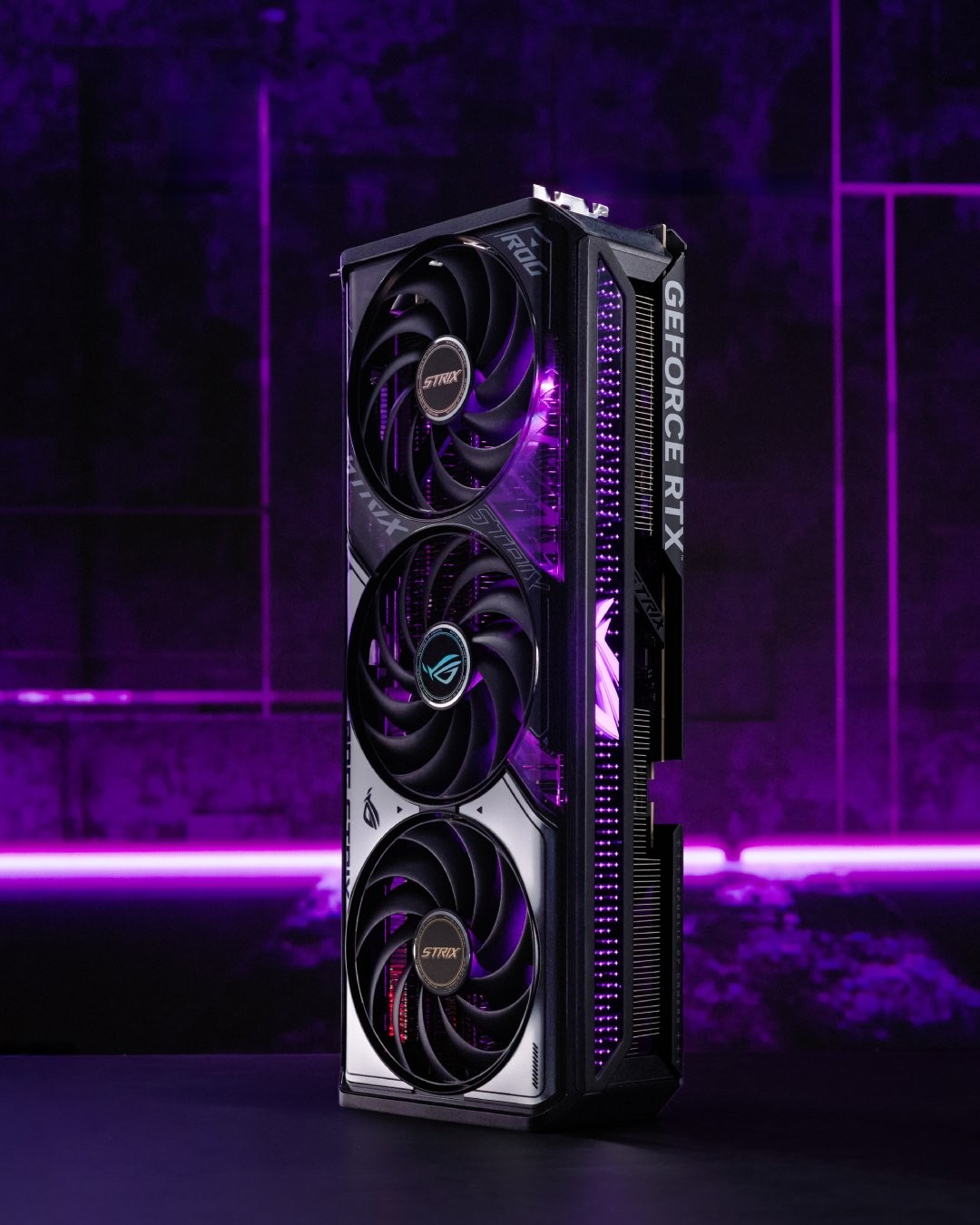 ROG STRIX 猛禽RTX 50系列显卡的外观采用银色与黑色双拼撞色,外壳还有精致的玩家之眼图标以及ROGSTRIX图腾装饰,显卡搭载了3个轴流风扇,两侧风扇逆时针旋转可大幅减少空气乱流,轴流风扇再加大提供31%以上的风量,显卡采用3.2插槽设计,大型散热鳍片以针对三个轴流风扇的风量进行优化,显卡的散热器底座采用了MaxContact镜面直触技术,配合GPU相变导热垫,保证显卡在高负载下的稳定性,专利真空腔均热板采用铣削通道设计使热管能够无变形地嵌入其中,从而提高散热效率。
