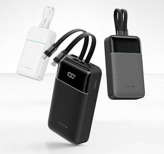 这款充电宝电池容量为 20000mAh,额定容量 12000mA,额定能量为77Wh,能满足手机 充满电3-4 次。它自带 Type-C 和 Lightning 两根数据线,可直接适配苹果与安卓设备。其自带线是强韧特制的,有15.8cm,耐用也耐脏,便携又省心。它还额外配备 了USB-A和USB-C 接口,能支持 4 台设备同时充电,它支持最高 22.5W 输出功率,兼容 PD 等主流快充协议,能实现耳机、平板、手机、手表等设备快速充电。自充也很快,搭配18W充电头自充可实现6.5小时充满。