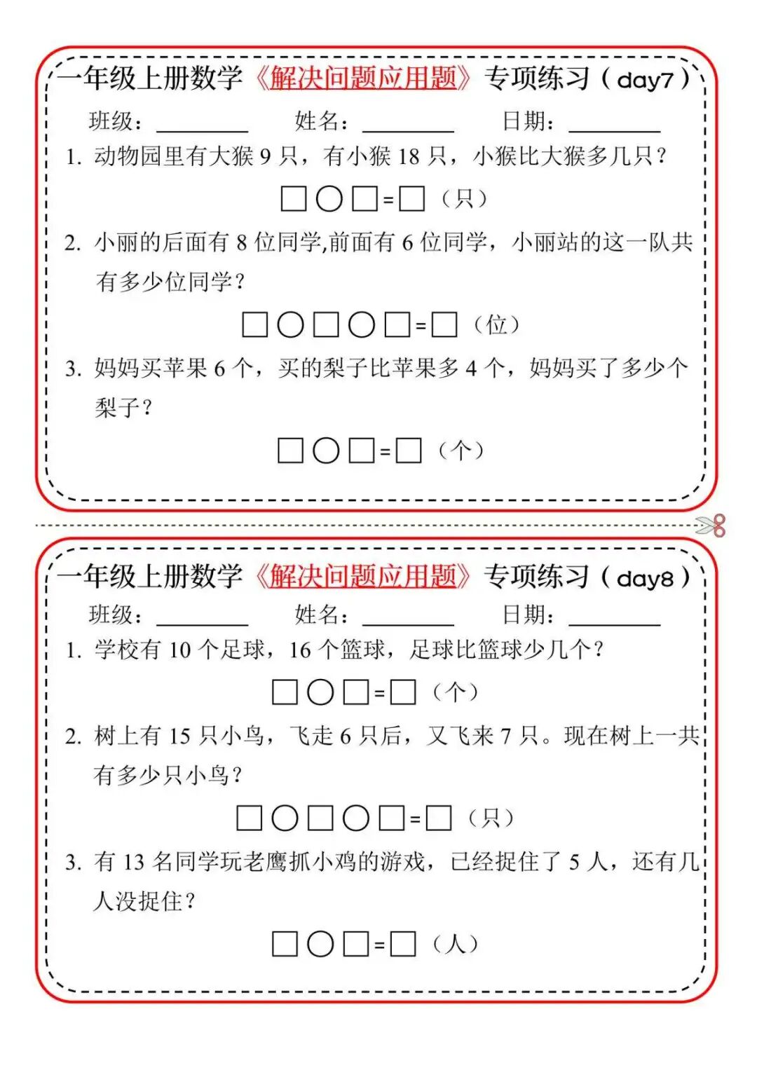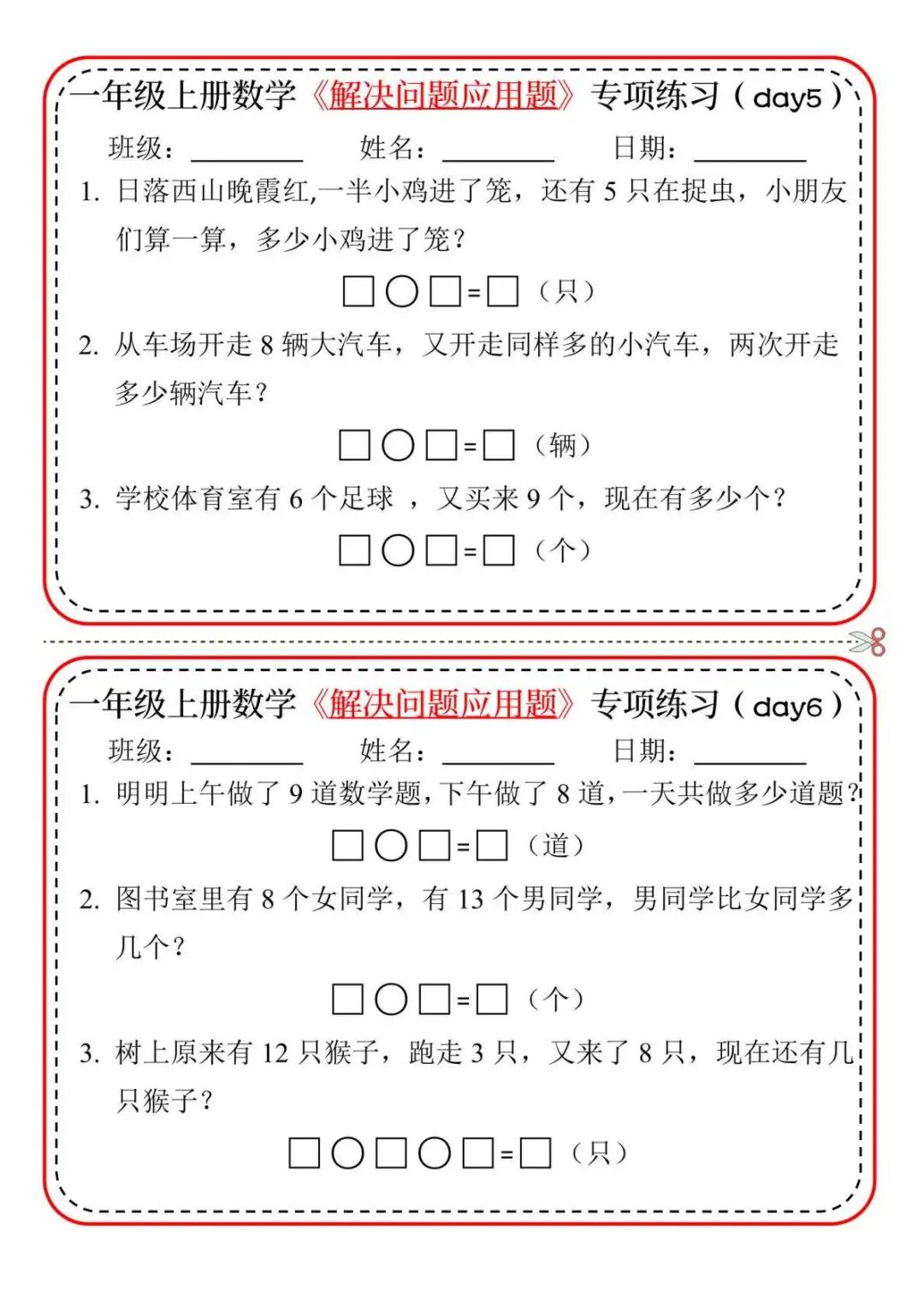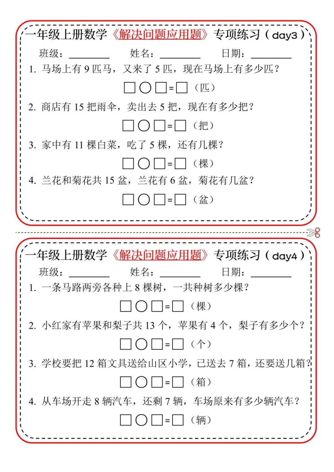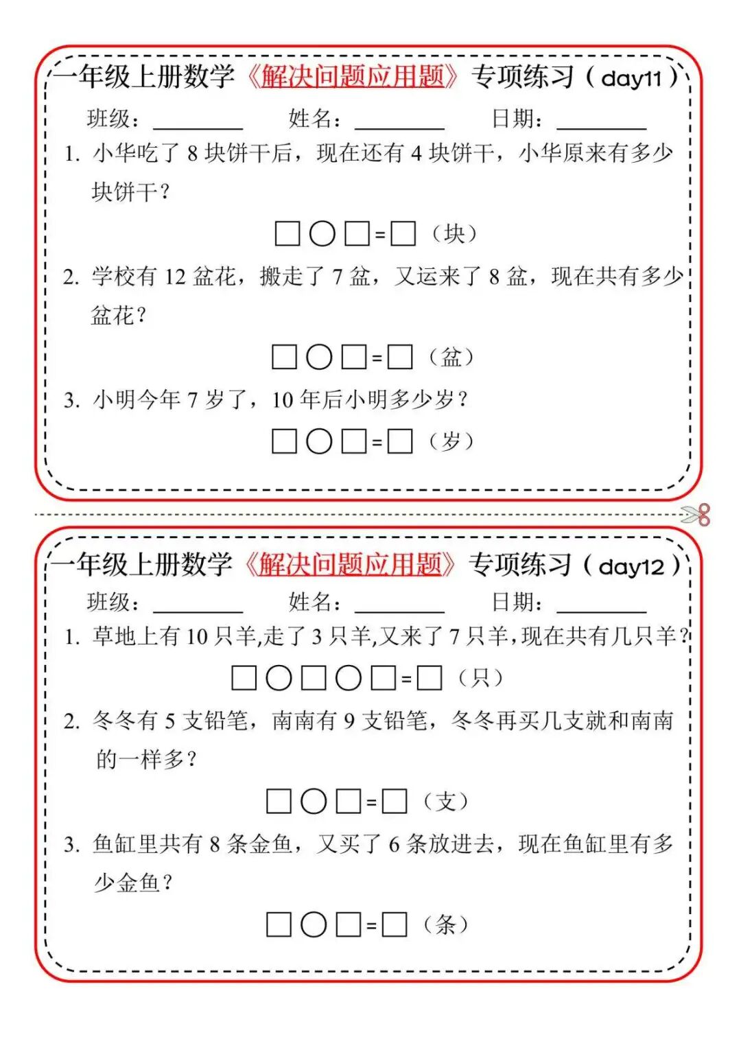 今天分享一套一年级上册数学《解决问题应用题》专项练习,帮孩子轻松攻克难题!