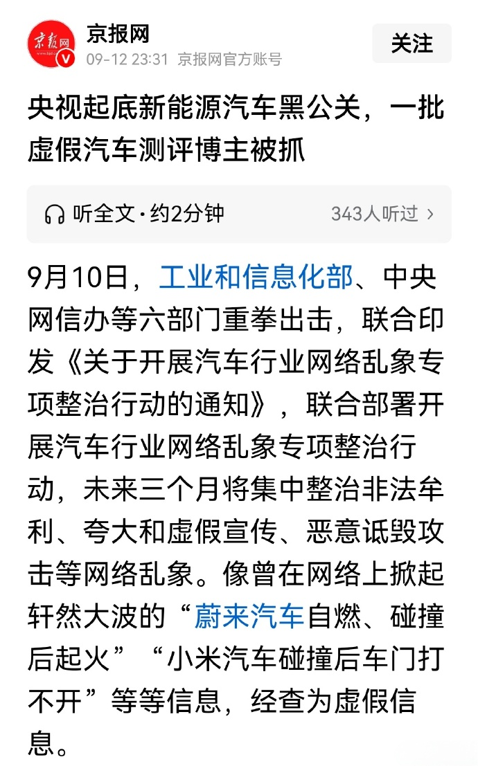 这类“黑公关”不仅损害单一品牌,更会破坏了产业生态、引发恶性竞争,本质上还阻碍了咱们中国汽车产业换道超车。