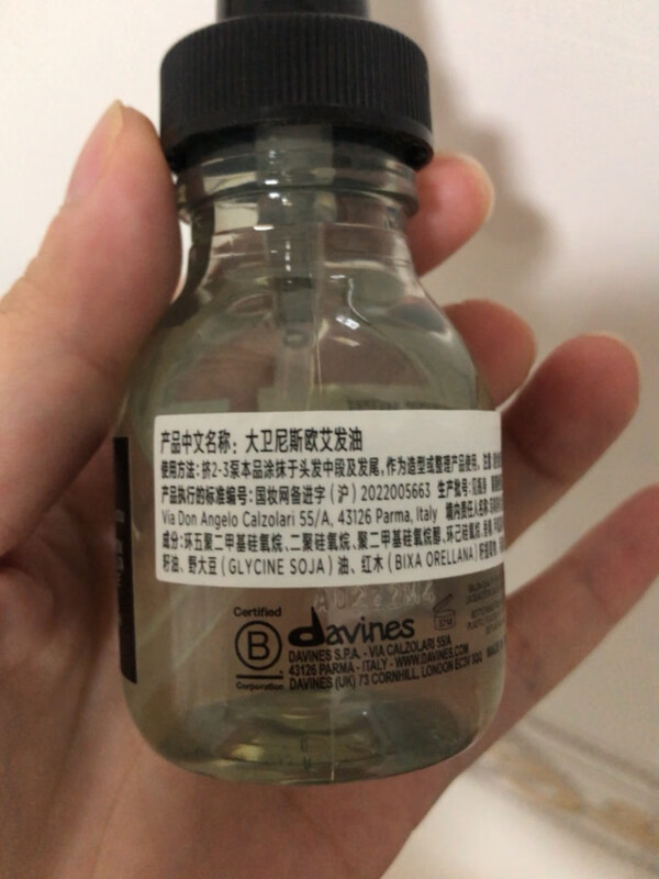 大卫尼斯护发精油配方整体中规中矩,日常用没大问题。染后吹发前抹角鲨烷部分,头发不容易炸毛,这点实用。但神经酰胺存在感弱,一周后发尾仍干,可能含量没跟上宣称?锁水包裹技术虽能锁成分,但下午发梢变干,小失望。