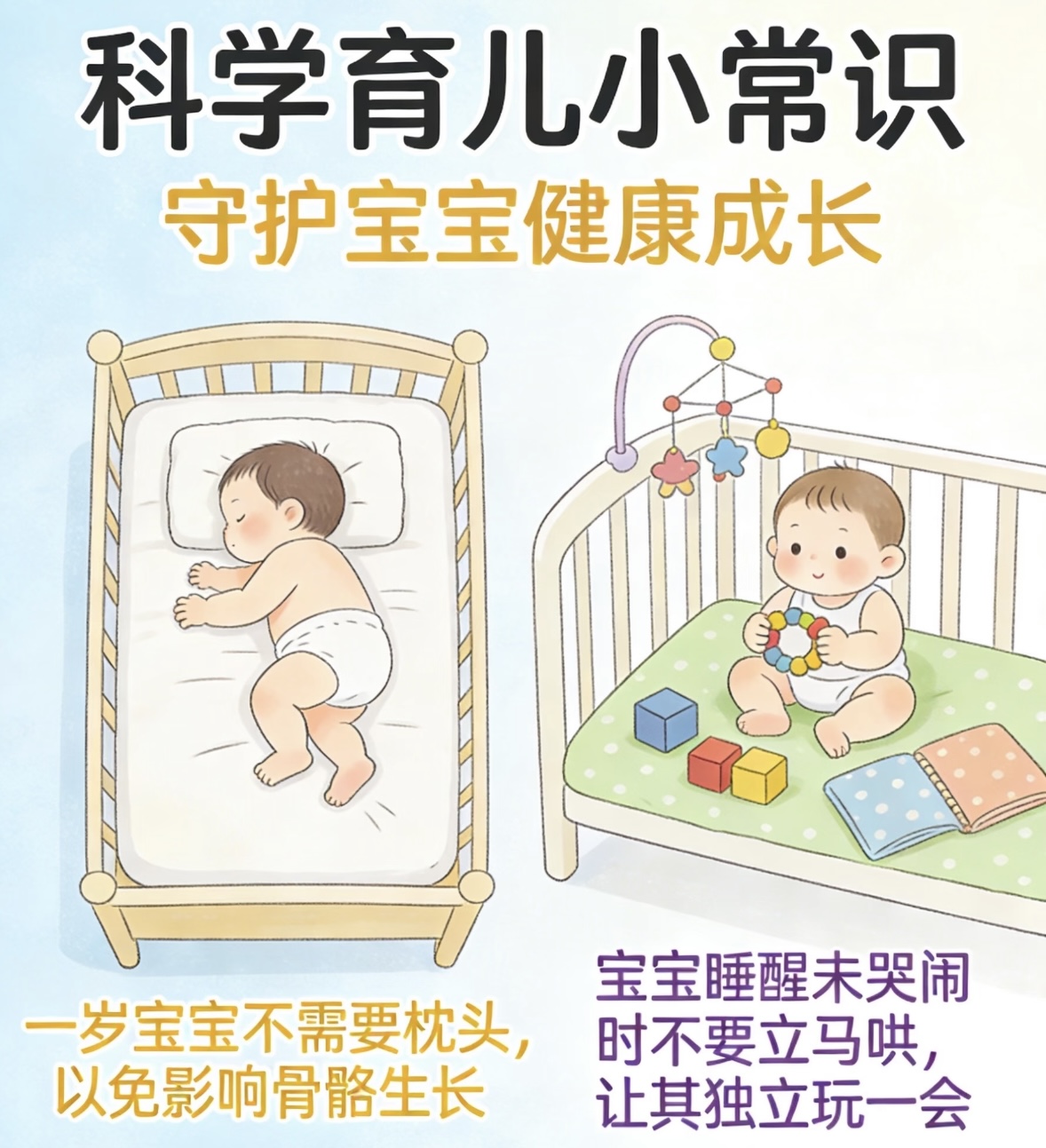 第一个也是最基础的法则,关乎宝宝最亲密的伙伴——睡眠。很多新手爸妈为了方便夜里照顾,会选择让宝宝跟大人同床睡。这其实是一个巨大的安全隐患。大人的翻身、被子的覆盖,甚至是熟睡中的无意挤压,都可能给宝宝带来致命的风险。最科学的做法是“同房不同床”,让宝宝睡在自己的婴儿床里,就在大人的床边。这样既方便照看,又能保证宝宝的呼吸安全。同时,别迷信那些复杂的哄睡技巧,宝宝的睡眠习惯是培养出来的。白天保持正常的光线,让他感受昼夜的区别,不要拉得严严实实;当他出现揉眼睛、打哈欠的睡眠信号时,就及时让他独立入睡,避免养成抱睡、摇睡的依赖,这对他未来的作息规律至关重要。