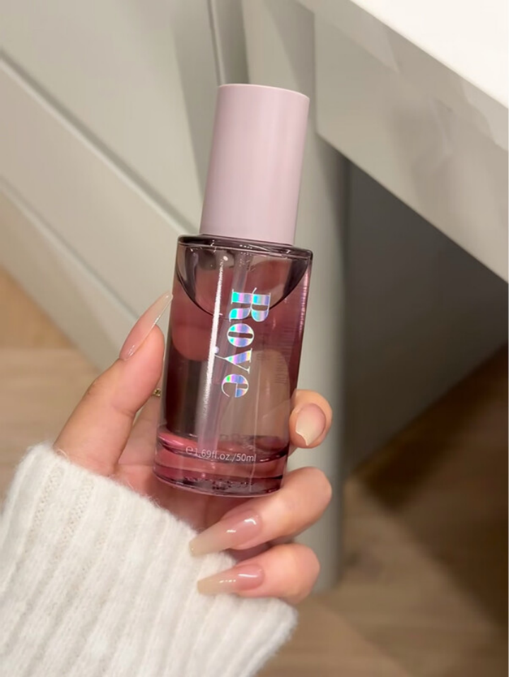 若也的香味还行,初闻没记忆点。上周和闺蜜逛公园,她突然拉我闻头发,说像刚摘的桃子混青草,很夏天。原来前调带点水蜜桃清甜味,不是工业香,风一吹就散,很清爽。缺点是赶时间抹湿发会黏糊糊的,香味散得快。技术上选的天然果子精油,不刺激,但湿发用留香更短,两小时就没了。