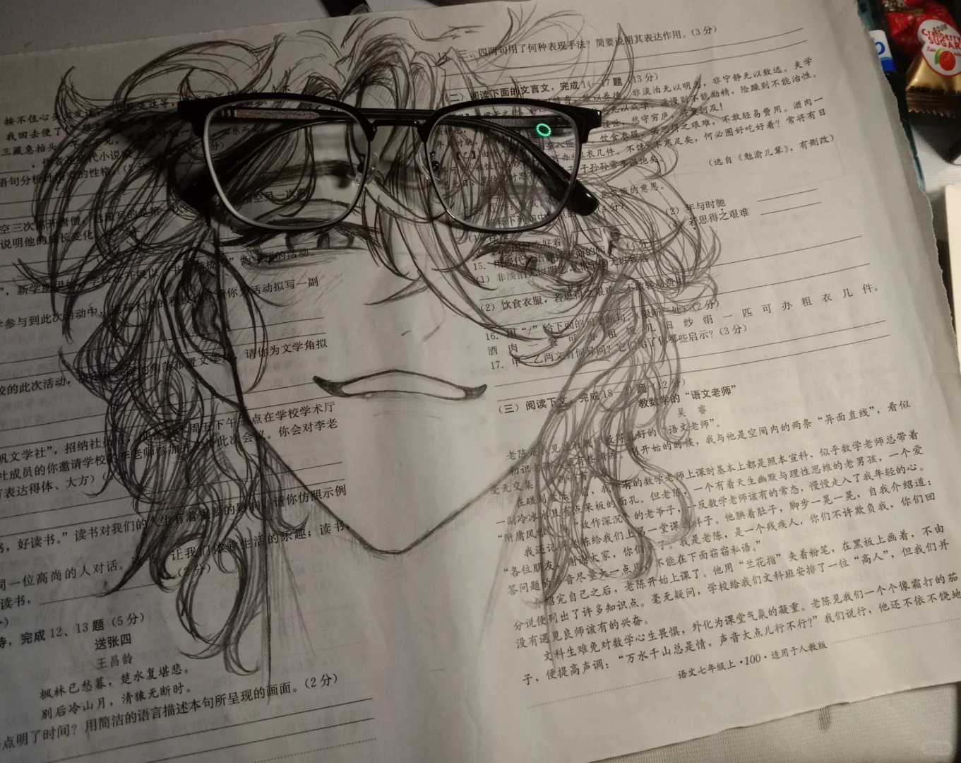 眼镜试卷挡脸还挺帅(*˘︶˘*)
