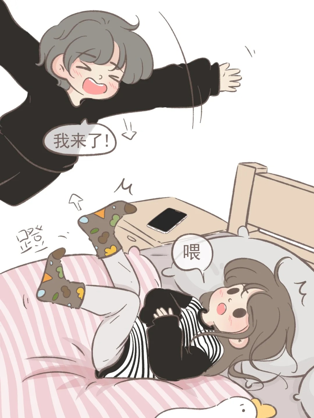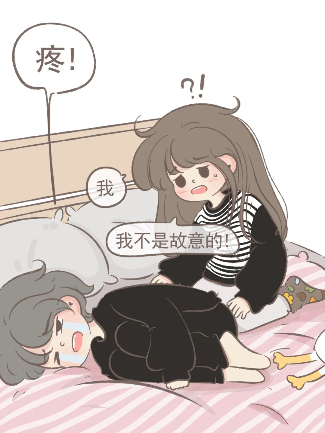我不是故意的! 真的真的不是故意的! 踢疼了吗?