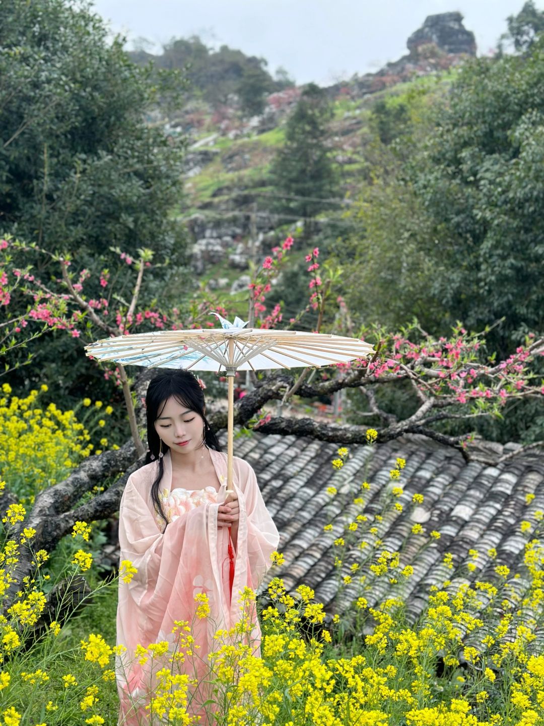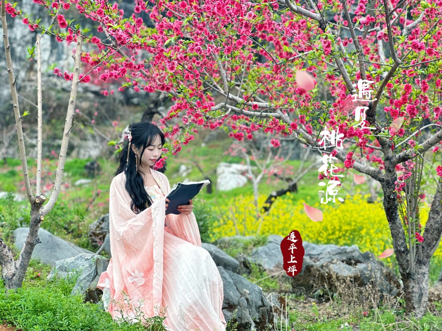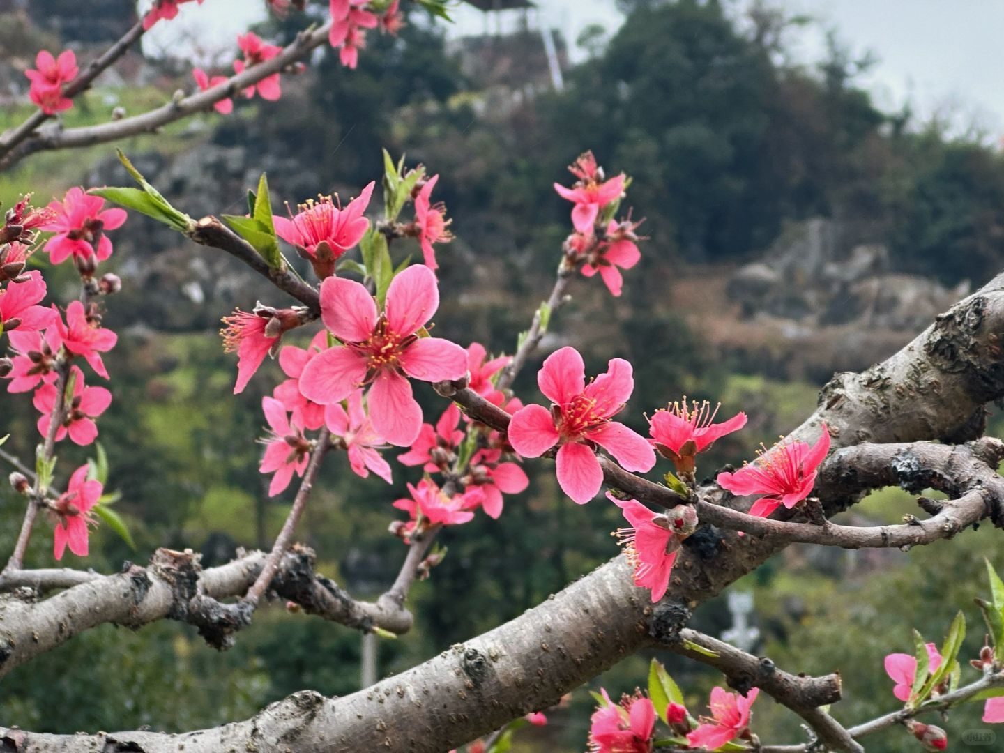 河源连平桃花盛开啦🌸推荐去小水村打卡🌟 水墨怪石映衬下真的好美,门票是10元一张,也还行,拍照真的出片📷不过山上天气冷,记得穿多点呢[哇R]