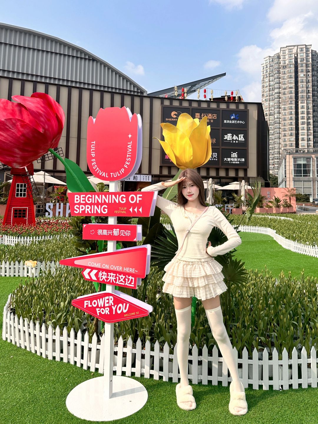 我要看郁金香🌷 每个女生都会喜欢花吧 那么重庆炒鸡美的郁金香来了 我已经忍不住告诉你们了 快去闻花香,感受花海吧 别开生面的一次浪漫体验活动 去看20000株郁金香鲜活绽放x5米风车 周末来打卡还送郁金香哦🌷❗️ 别人给不了的浪漫 金源会给你🥰