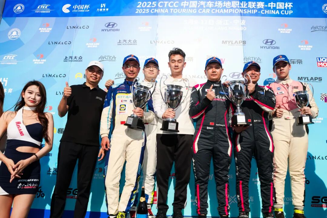 绍兴柯桥站,CTCC中国杯迎来了高温和暴雨的双重考验。第一回合正赛后期突降暴雨,比赛局面发生巨变,多台赛车发生失误冲出赛道。杨政凭借出色的驾驶技巧和强大的心理素质,一路稳健前行,以全场第三、组别亚军的成绩结束了首回合战斗。