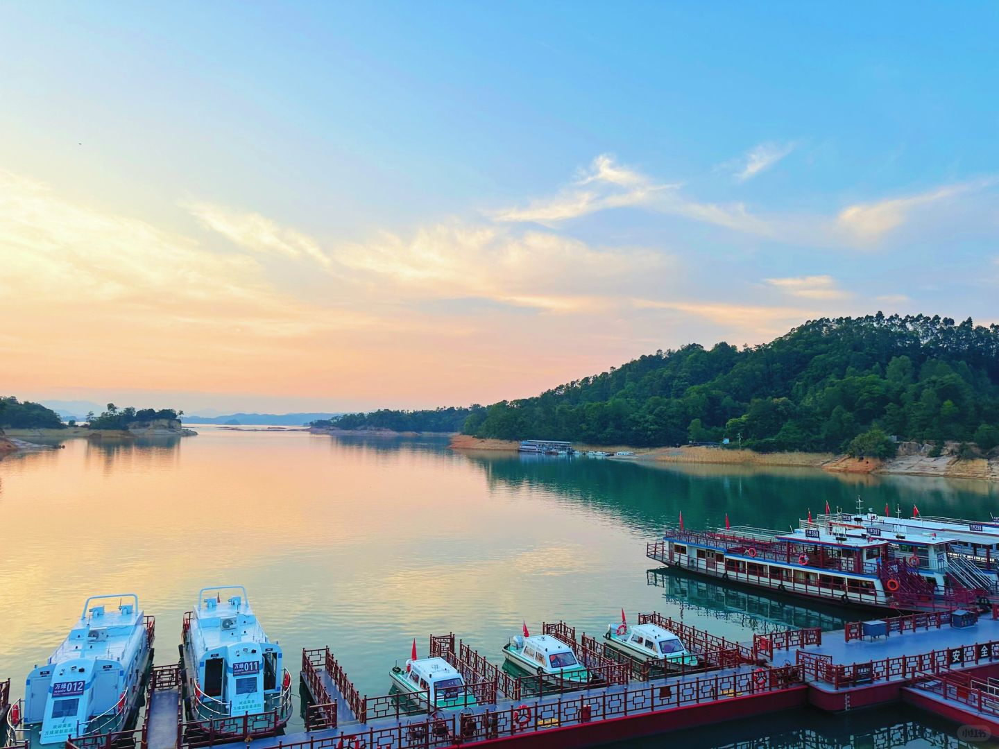 想要乘船游玩的话,就可以选择万绿湖套票,会去龙凤岛,水月湾,镜花缘三个岛屿,开船时间是上午9点到下午3点⏰岛上随处拍都很出片,而且还有很多特色打卡地~