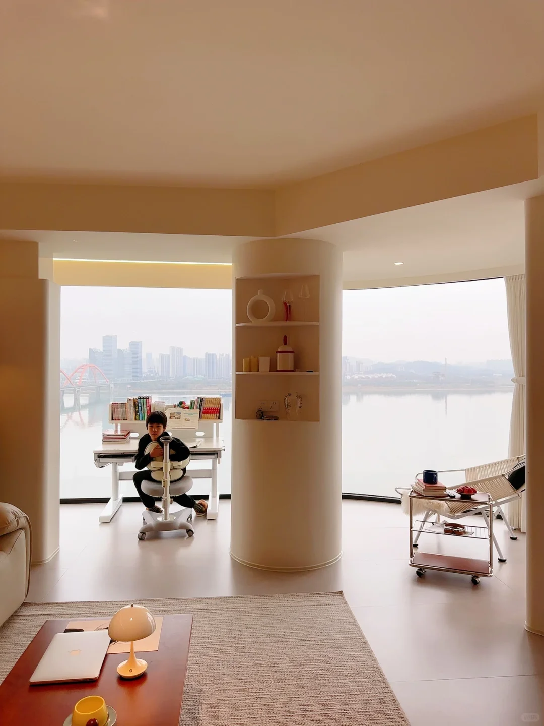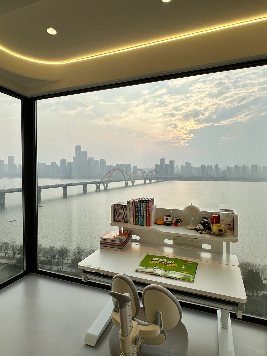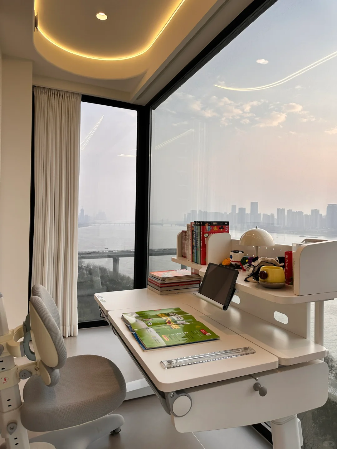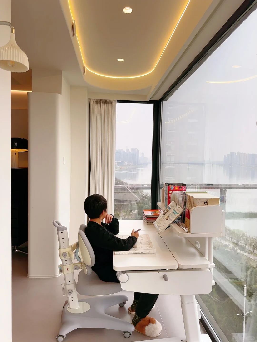特别是崽子的卧室只有12平 放了上下铺就放不下书桌了!但不论是什么样的家庭!孩子的学习都是重中之重最重要的事情。自然而然要放在环境比较好的位置。和老公商量把阳台作为崽子的学习区,平时写累了作业可以远眺休息一下。👍