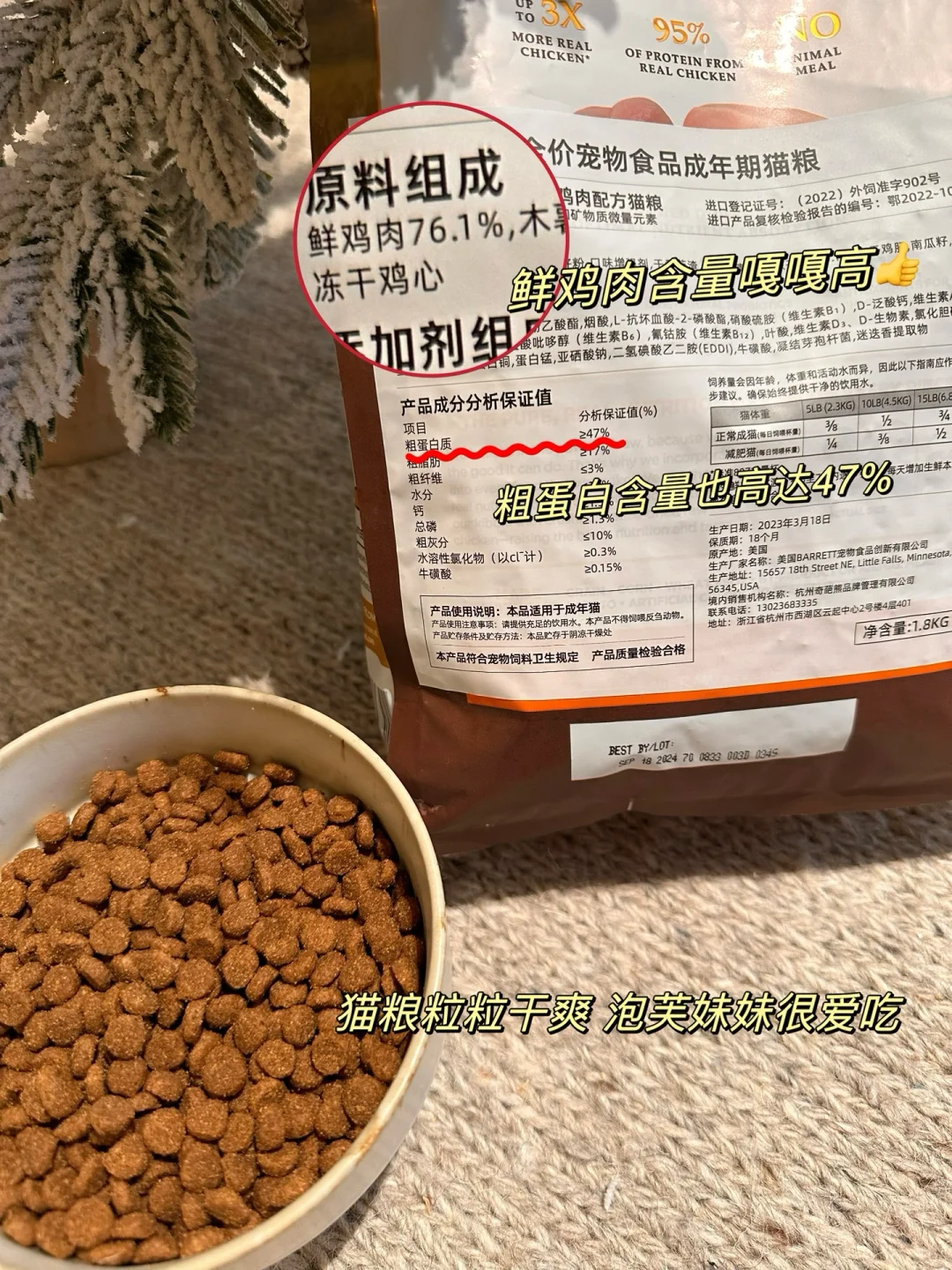 粗蛋白含量≥47%,营养配比上很贴心