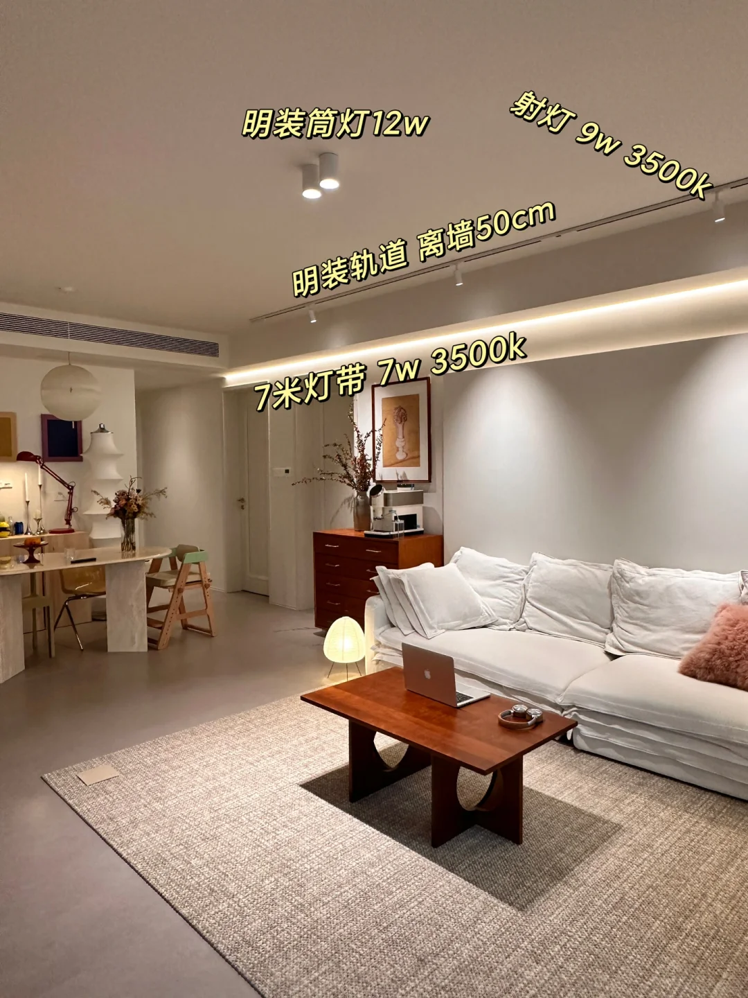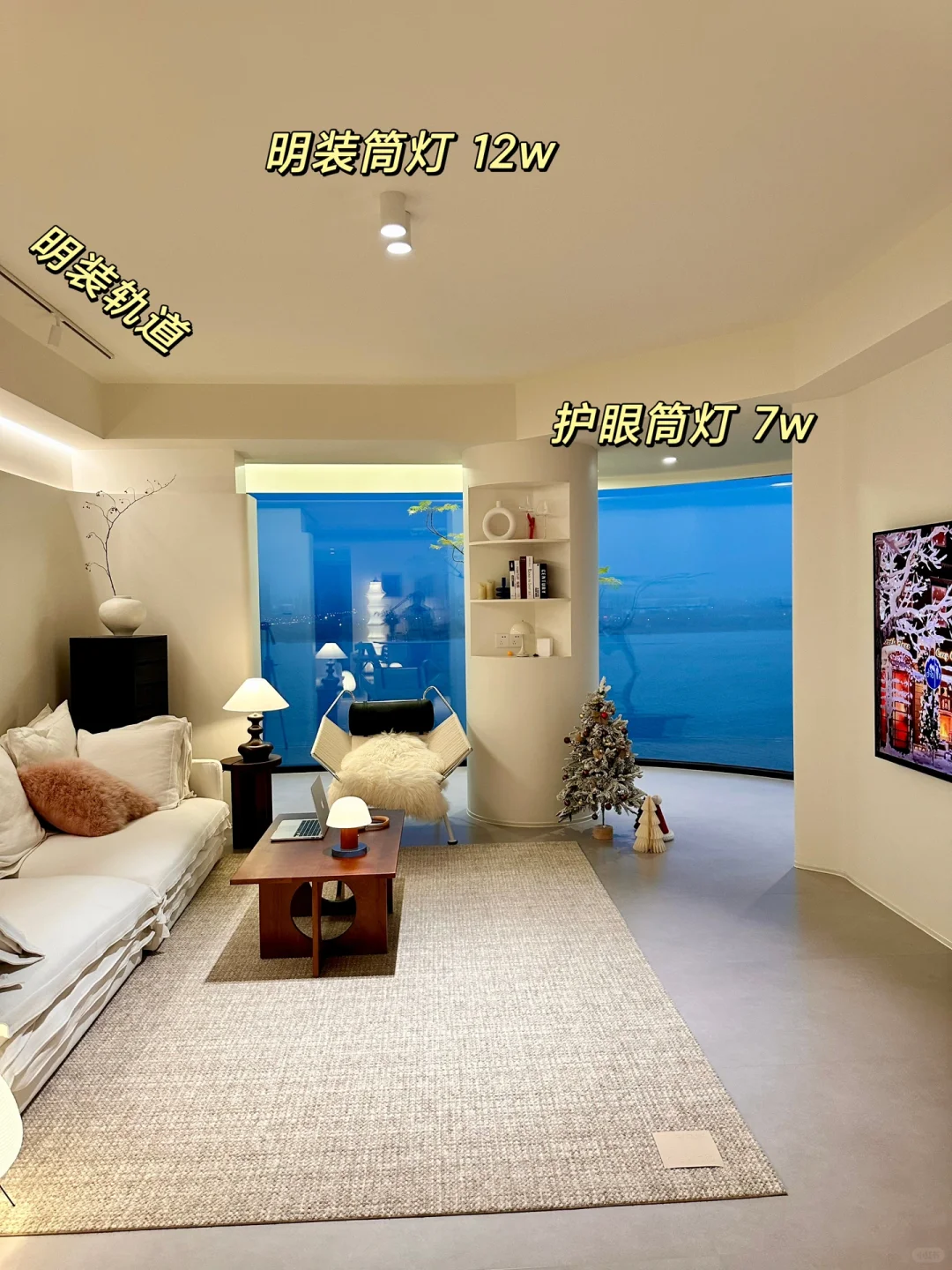 1⃣客厅:4个筒灯,阳台5个筒灯,除了补充照明,主要是护眼,适合小坐看江景
