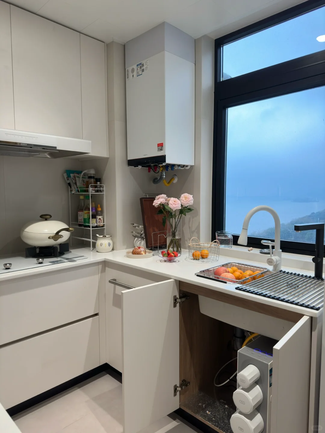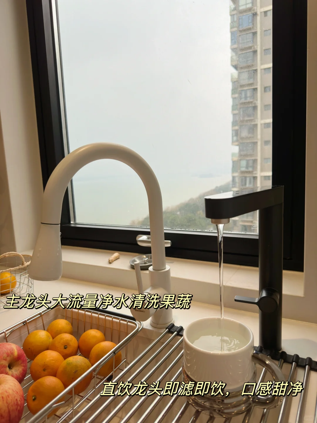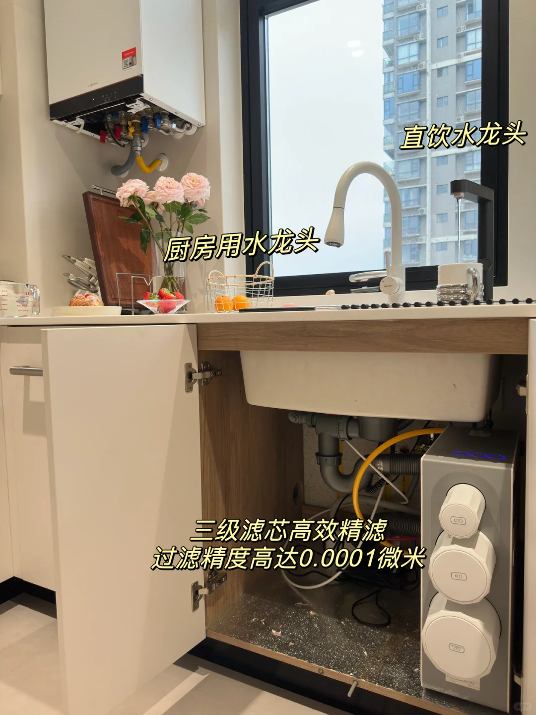 🧿末端直饮机:我家安装在中厨水槽的下方,并且搭配了管线机,直饮+热水都能满足。对于每天都要喝很多水的人真的太友好。这台还是全厨双出水,可以满足不同的厨房用水需求,主龙头的净水水流量很大,用来清洗果蔬非常方便,平时做饭、煲汤就可以用直饮龙头,口感甜净,煮出来的饭又香又软,吃起来也很放心。
