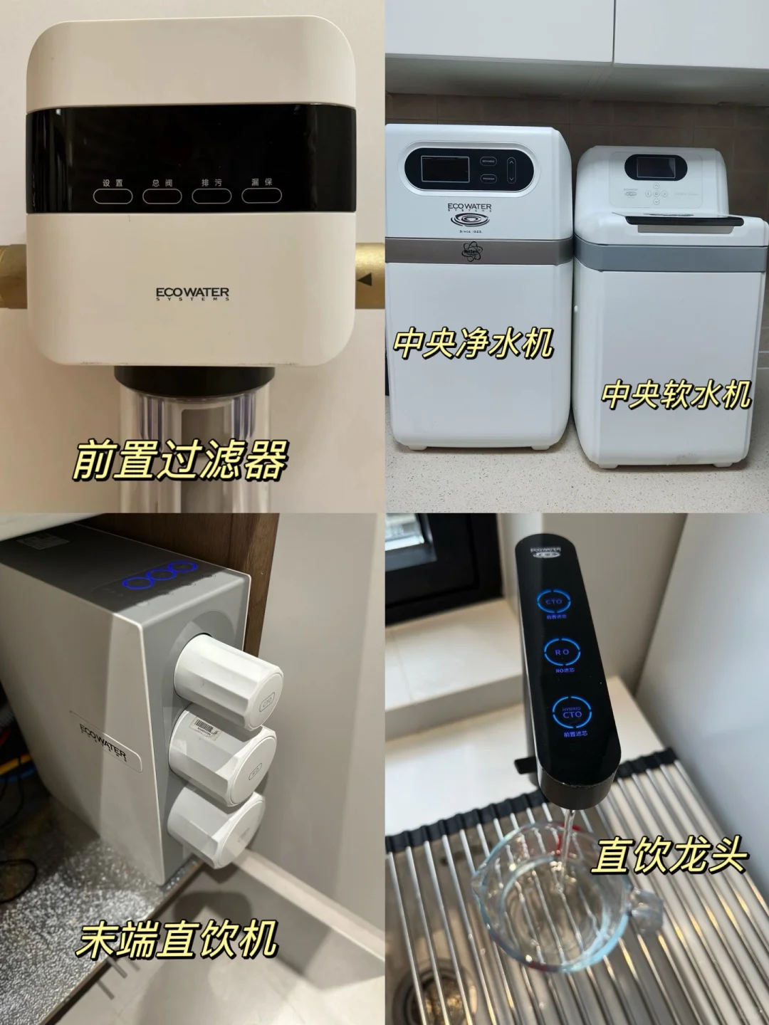 包括了前置过滤器, 中央净水机,中央软水机和末端直饮机[害羞R]
