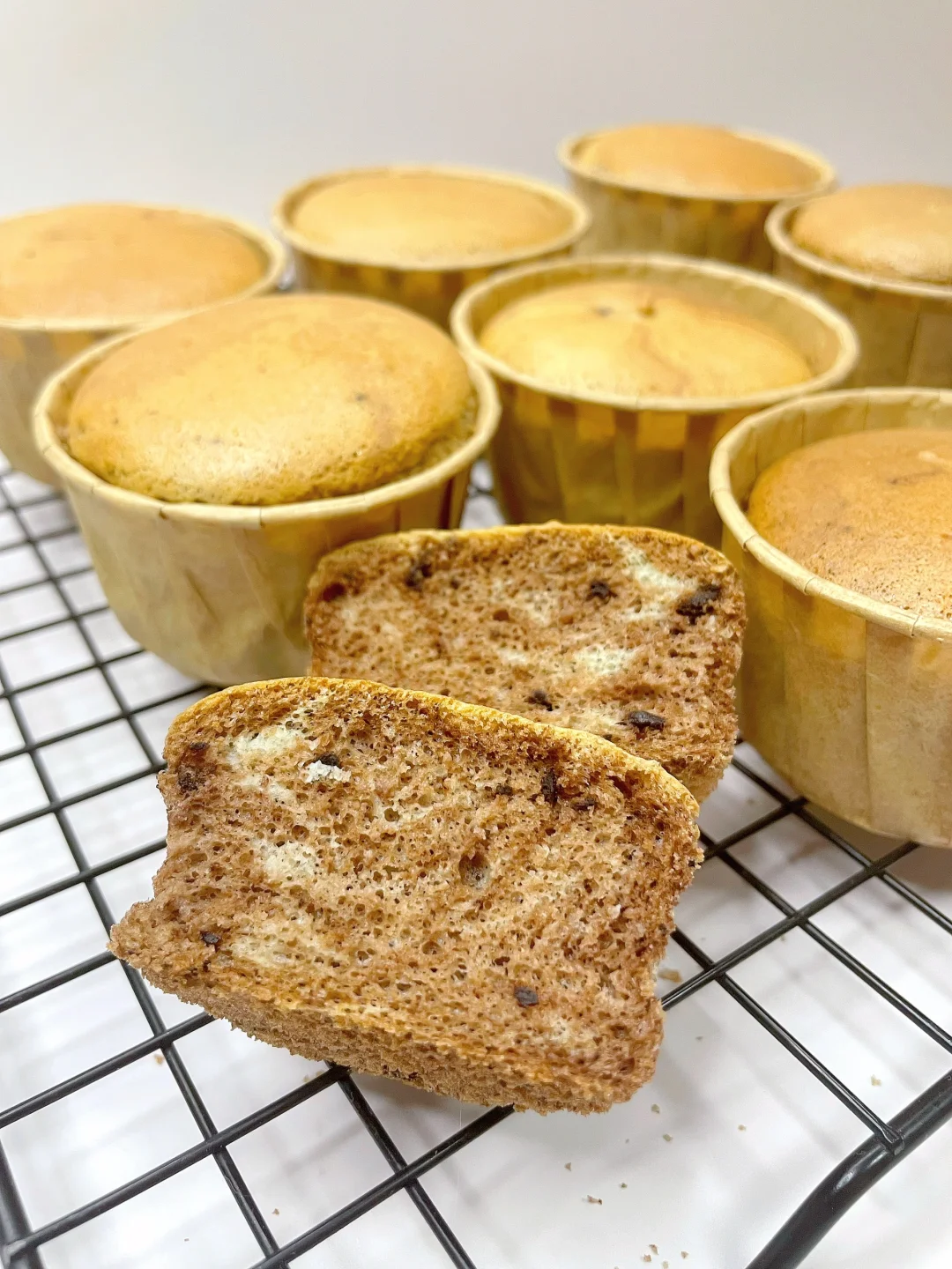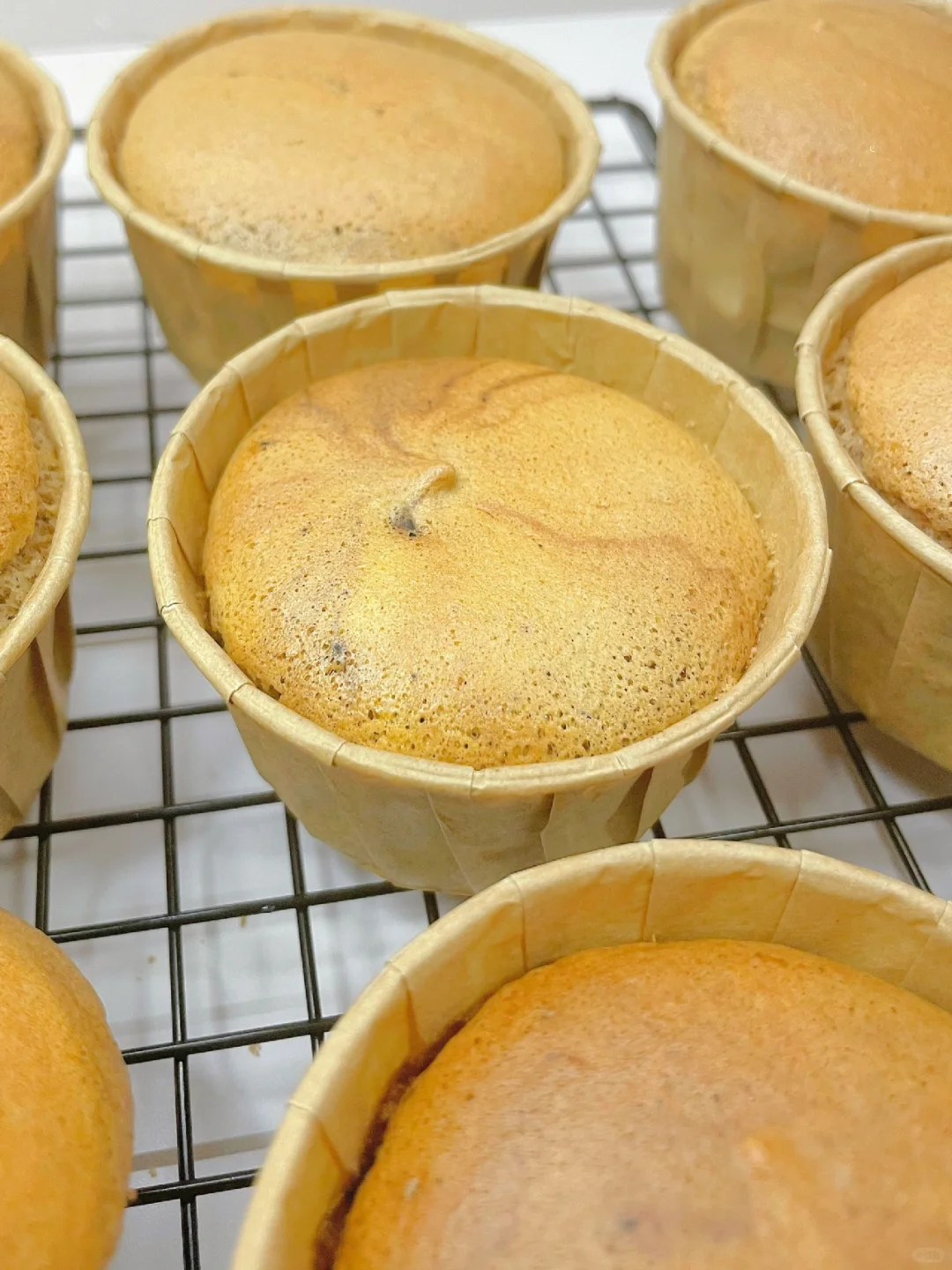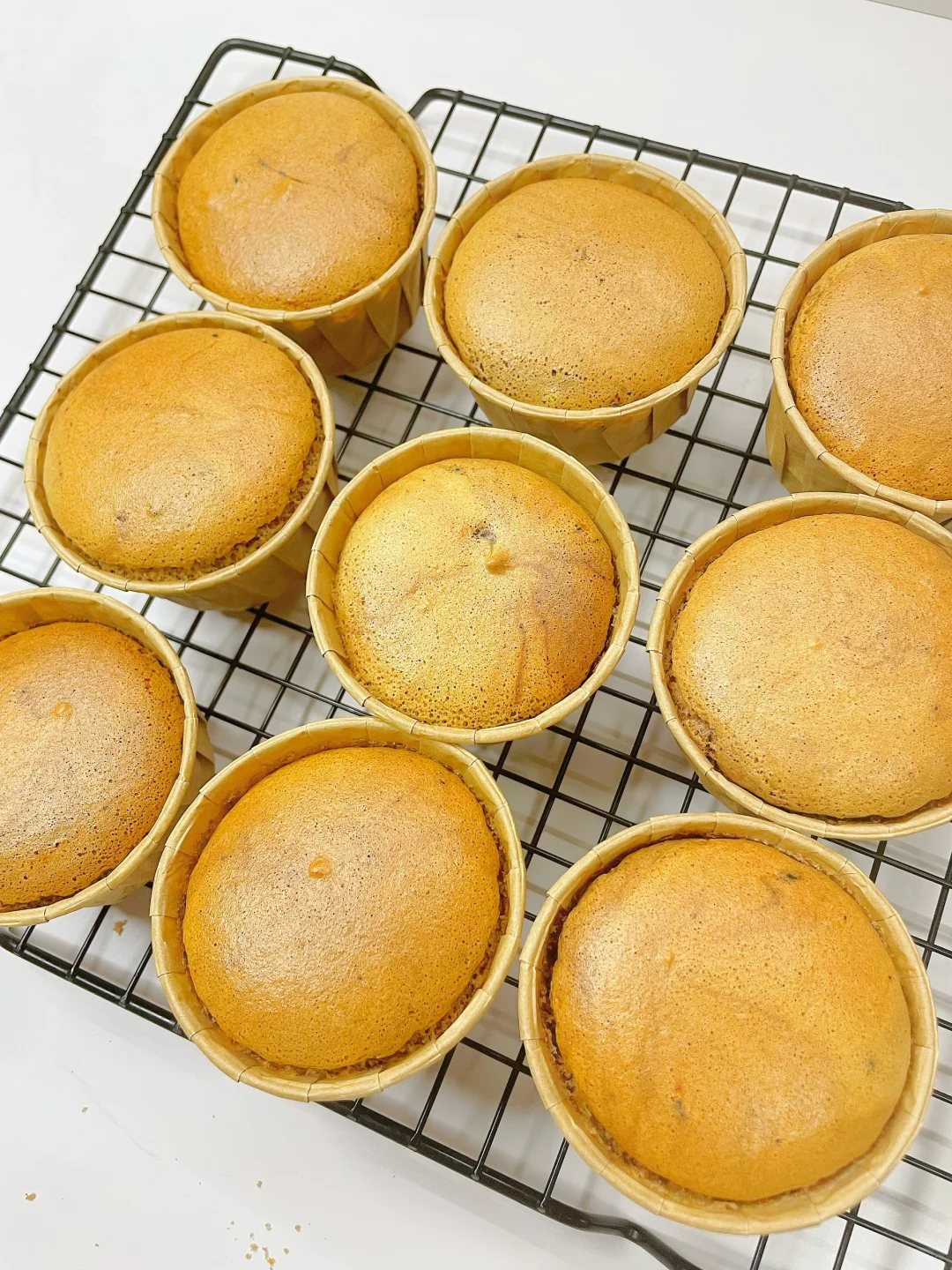 5️⃣烤箱110度预热10分钟烤20分钟,转130度烤30分钟,再转150度烤10分钟左右上色即可,这样捞出来的纸杯蛋糕不会开裂哦~