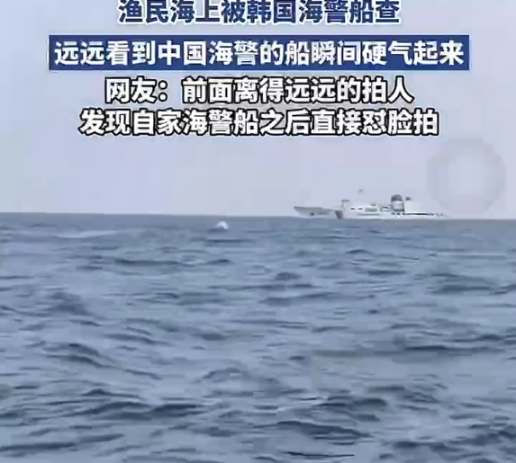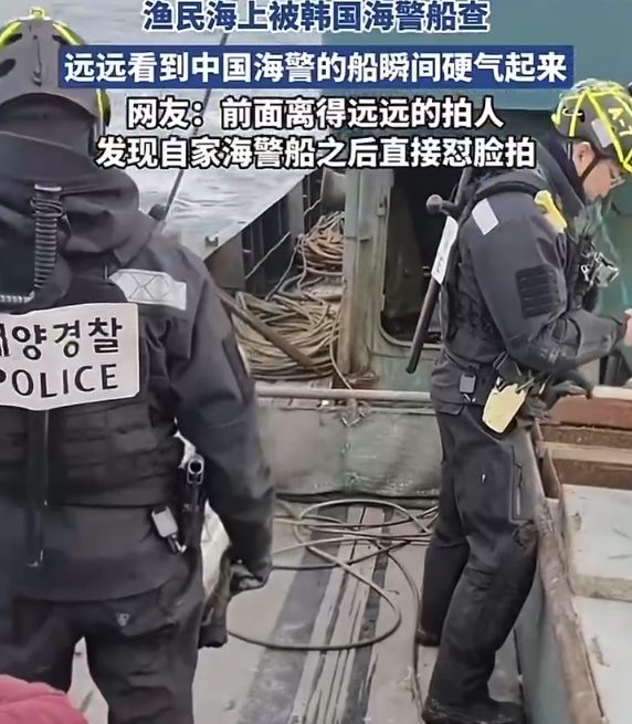 韩国海警检查中国渔船,中国海警抵达后,韩海警“心虚”对视